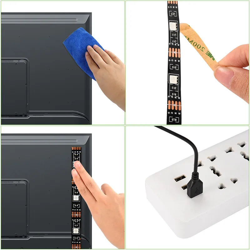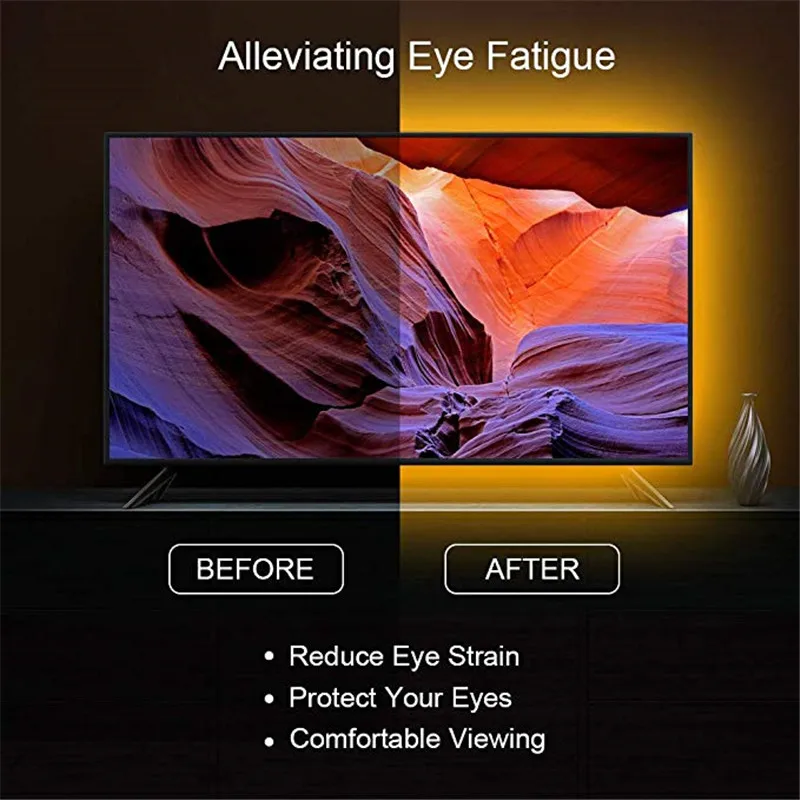 Благодаря этому ультра-гибкому ленточному светильник будет чрезвычайно легко украшать телевизор, автомобиль и стену и создавать более удобный светильник для ваших глаз.
