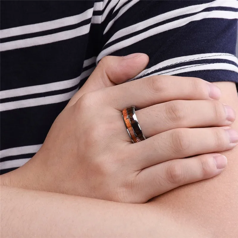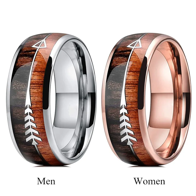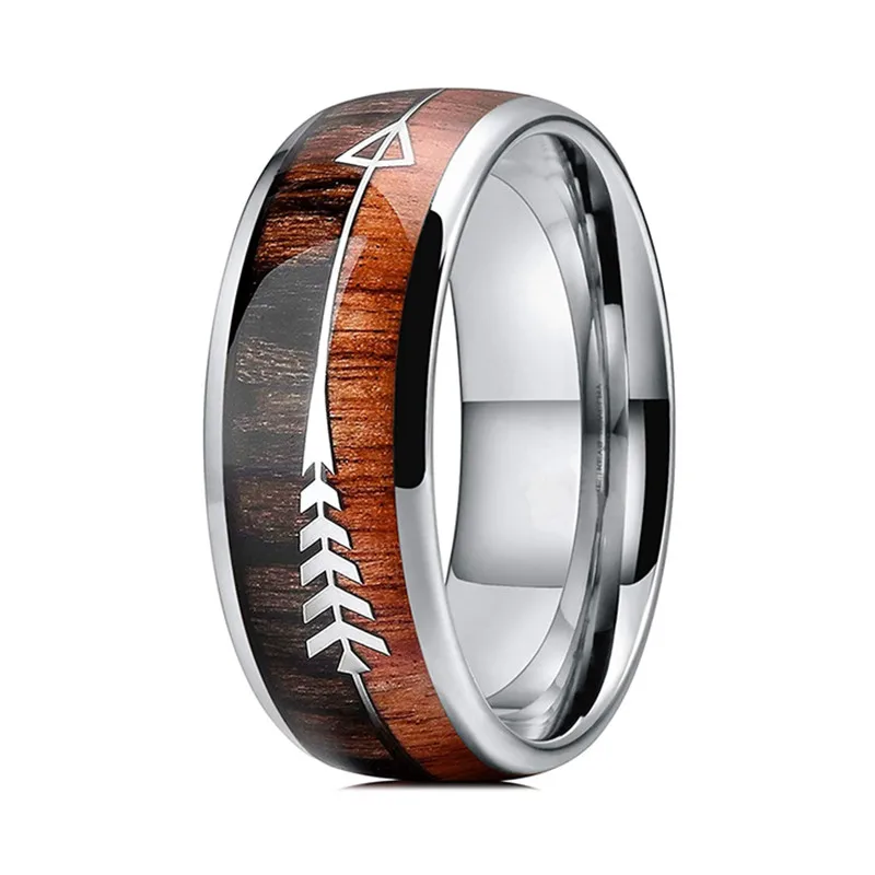 Кольцо мужскоеженское, из нержавеющей стали, с деревянными стрелками