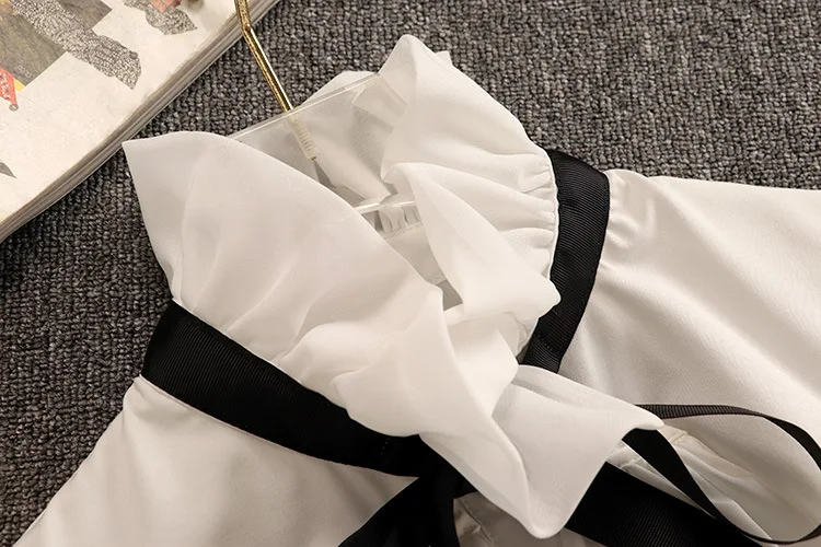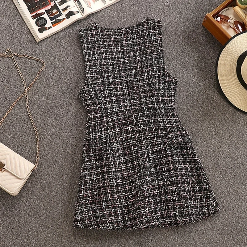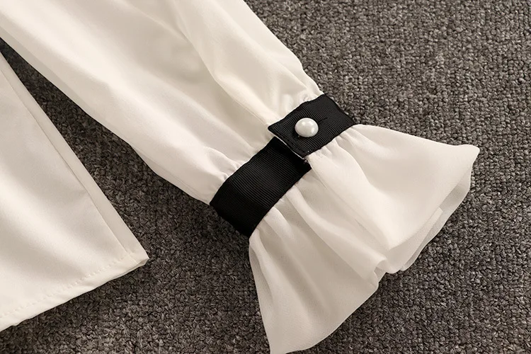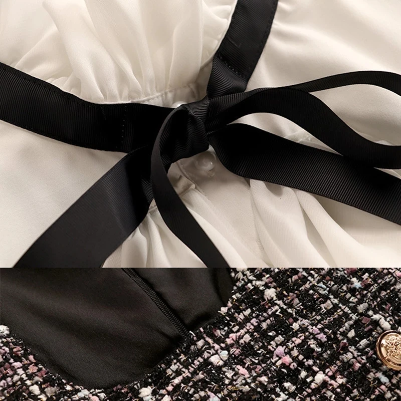 Женский комплект из 2 предметов, шифоновый топ с бантом и оборками и двубортный твидовый жилет в клетку, Осень-зима 2021