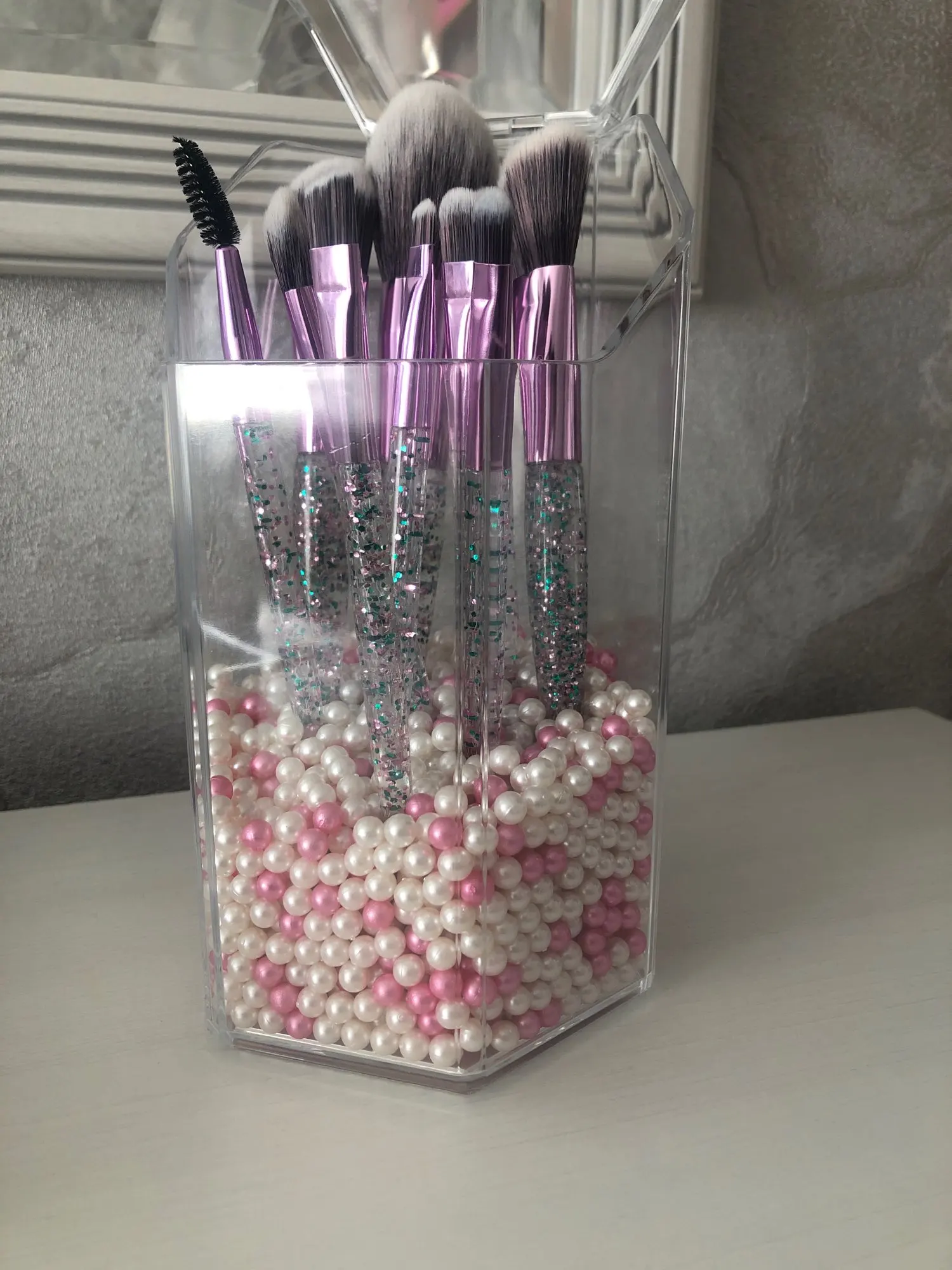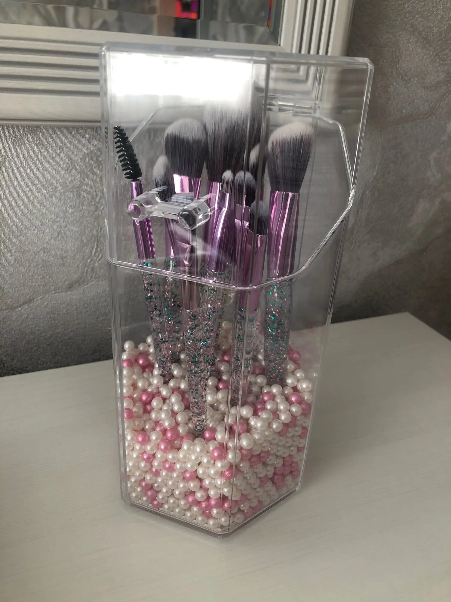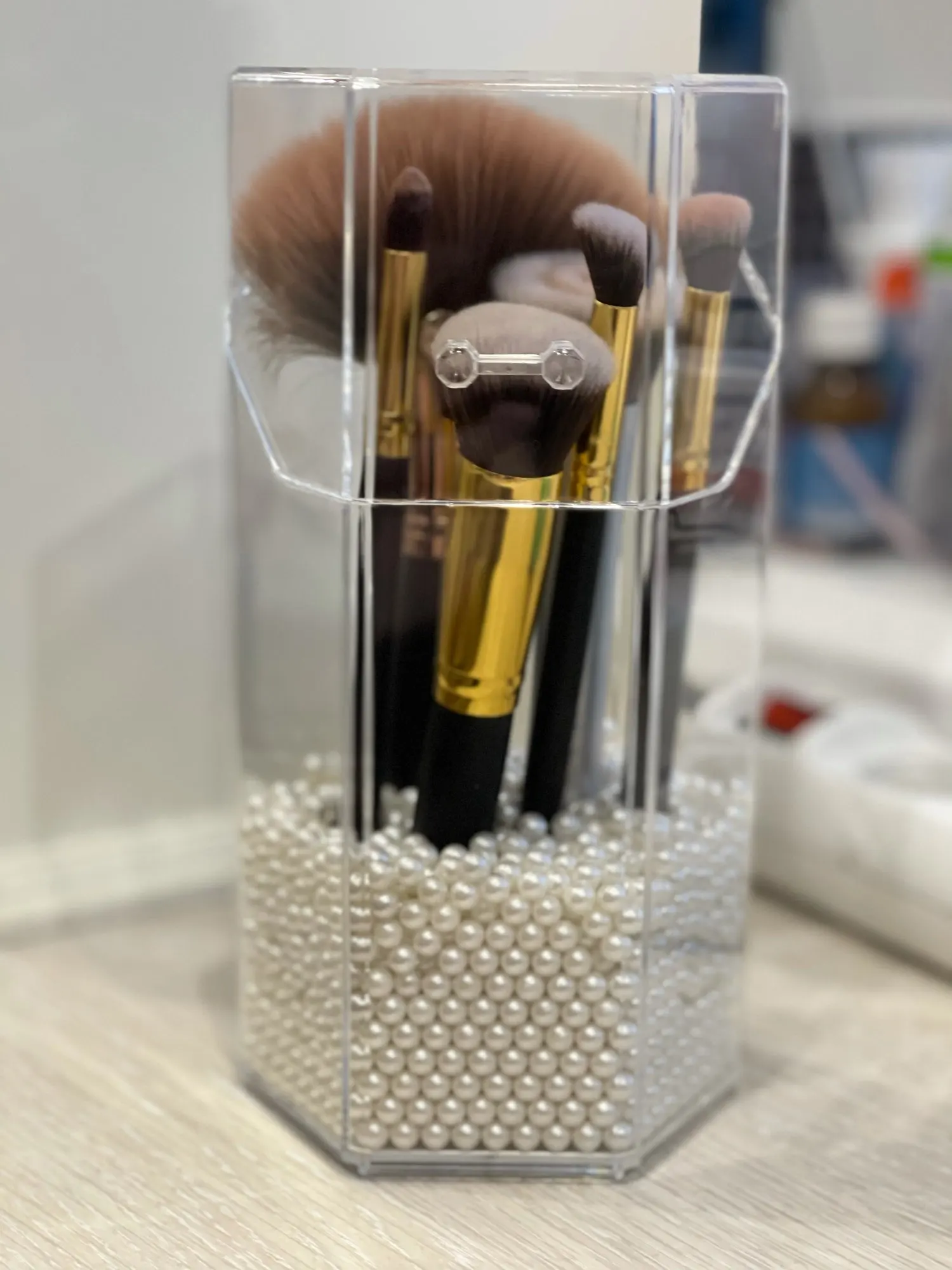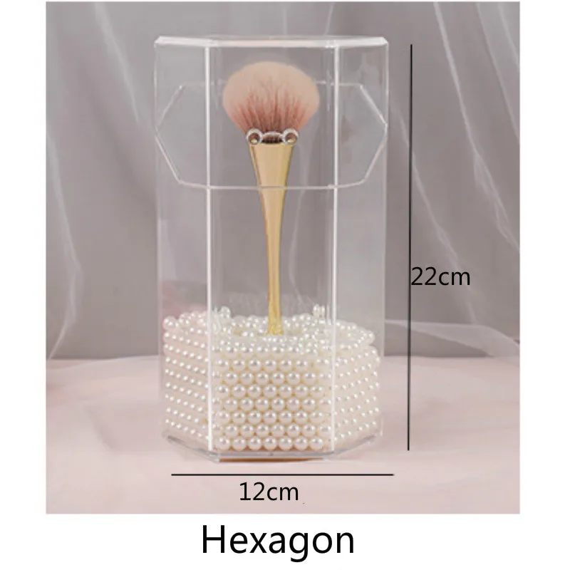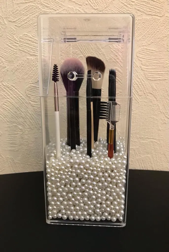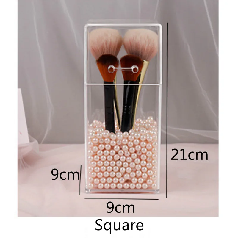 Квадратная акриловая коробка для косметики с жемчугом и крышкой, прозрачный откидной Чехол, ведро для кистей, органайзер, контейнер для кистей, настольные аксессуары