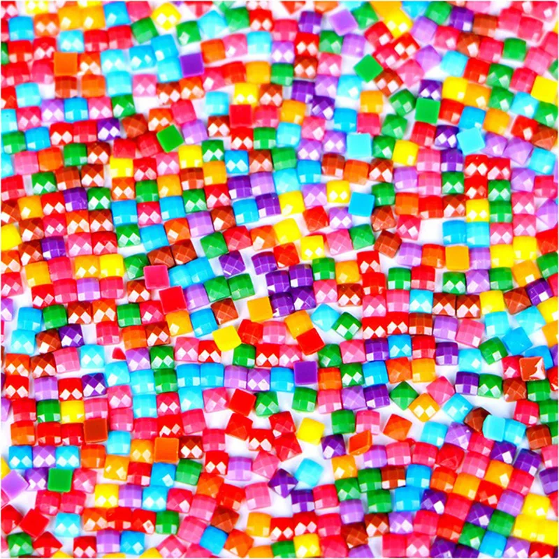 Квадратные камни-из цветного акрила, также прекрасно переливаются светильник. Квадратные Стразы очень хорошо заполняют все свободное пространство. После завершения, если вы выровняете ряды, эффект от рисунка будет великолепным.