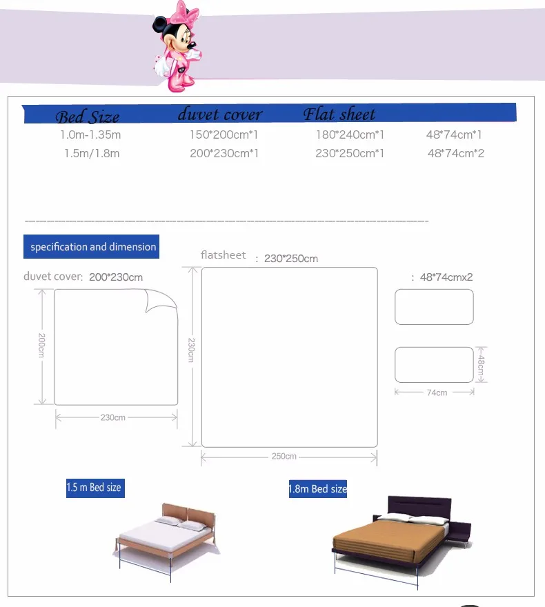 ● Размер AU AU Single:1 * пододеяльник 140 см x 210 см (55 "x 82"), 2 * наволочка 50 см x 75 см (19 "x 29"). AU Double:1 * пододеяльник 180 см x 210 см (71 "x 82"), 2 * наволочка 50 см x 75 см (19 "x 29"). AU Queen: 1 пододеяльник 210 см x 210 см (82 "x 82"), 2 наволочки 50 см x 75 см (19 "x 29"). AU King: 1 пододеяльник 245 см x 210 см (96 "x 82"), 2 наволочки 50 см x 75 см (19 "x 29"). Флуоресцентный ● Европейский размер Европейский стандарт: 1 пододеяльник 140 см x 200 см (55 "x 79"), 2 наволочки 50 см x 75 см (19 "x 29"). Двойной европейский размер: 1 пододеяльник 200 см x 200 см (79 "x 79"), 2 наволочки 50 см x 75 см (19 "x 29"). Европейский Король: 1 пододеяльник 240 см x 220 см (94 "x 86"), 2 наволочки 50 см x 75 см (19 "x 29"). Суперкороль ЕС: 1 пододеяльник 260 см x 220 см (102 "x 86"), 2 наволочки 50 см x 75 см (19 "x 29"). Флуоресцентный ● Размер США США Twin: 1 * пододеяльник 172 см x 218 см (68 "x 86"), 2 * наволочка 50 см x 75 см (19 "x 29"). США: 1 * пододеяльник 200 см x 229 см (79 "x 90"), 2 * наволочка 50 см x 75 см (19 "x 29"). Королева США: 1 пододеяльник 229 см x 229 см (90 "x 90"), 2 наволочки 50 см x 75 см (19 "x 29"). Король США: 1 пододеяльник 259 см x 229 см (102 "x 90"), 2 наволочки 51 см x 91 см (19 "x 36"). ------------------