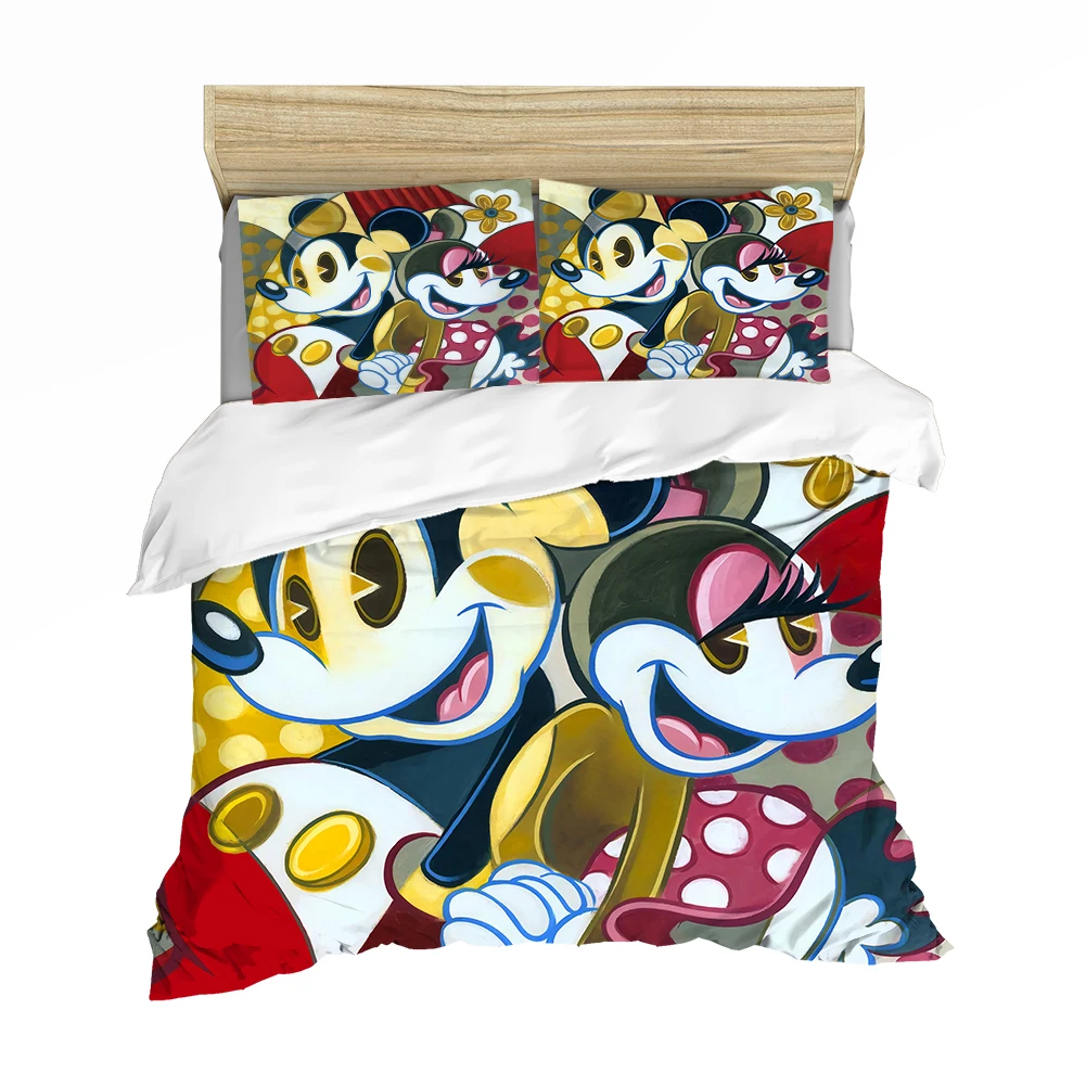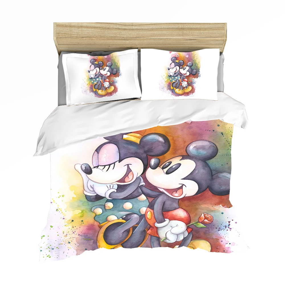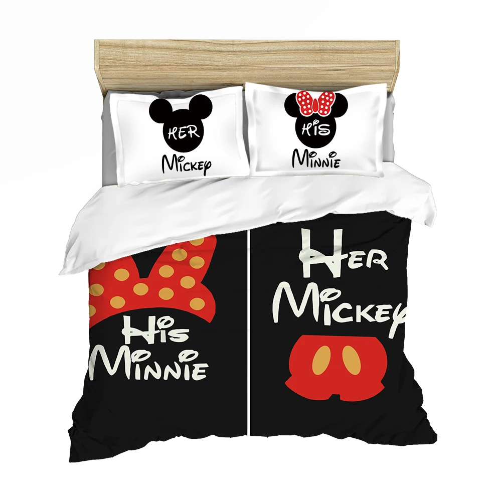 Мультфильмы Disney с Микки Маусом и Минни Маус комплект Мышь Постельное белье Твин Queen King Размеры для мальчиков и девочек, комплекты постельного белья стеганое одеяло, пододеяльник Наволочки
