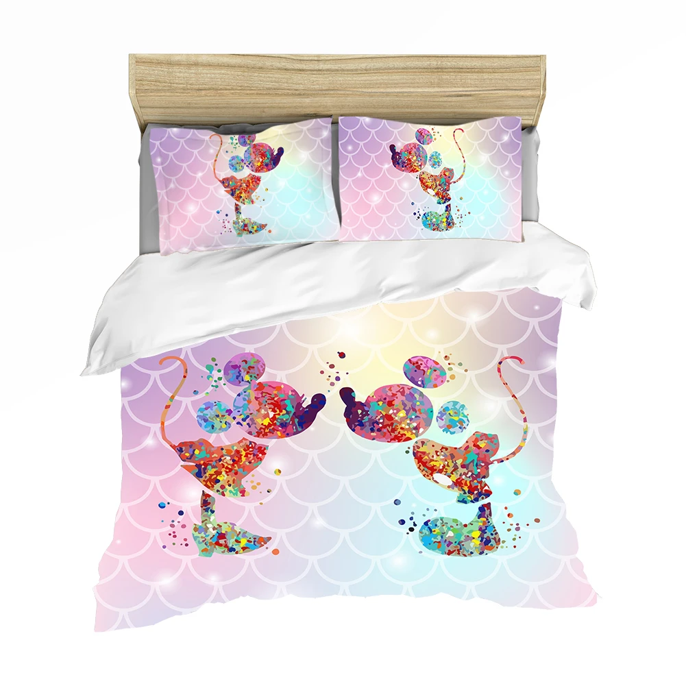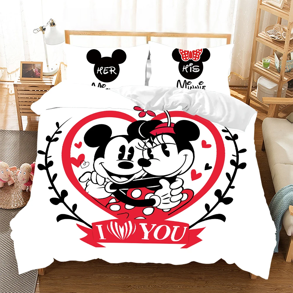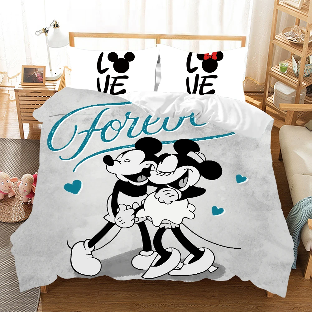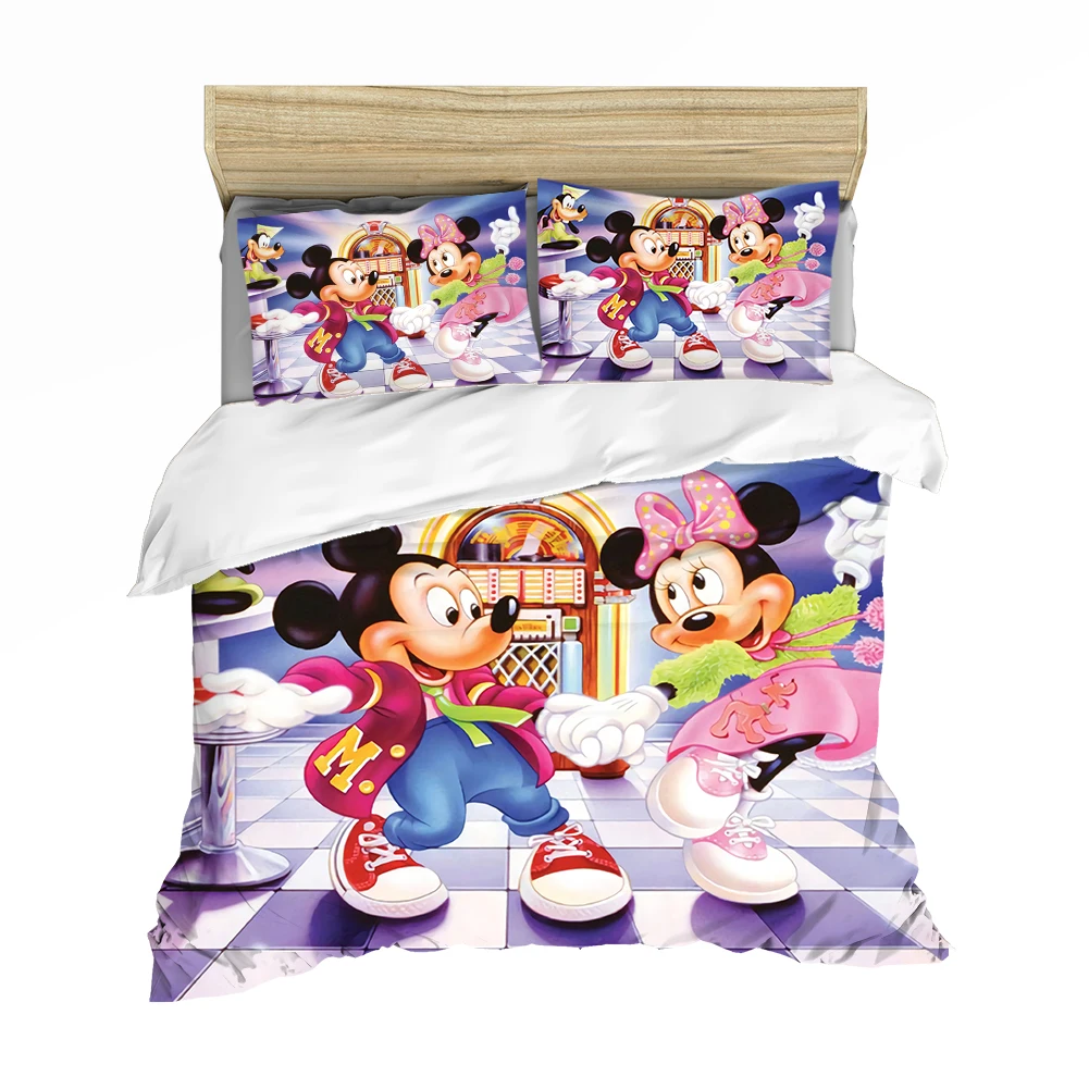 Мультфильмы Disney с Микки Маусом и Минни Маус комплект Мышь Постельное белье Твин Queen King Размеры для мальчиков и девочек, комплекты постельного белья стеганое одеяло, пододеяльник Наволочки