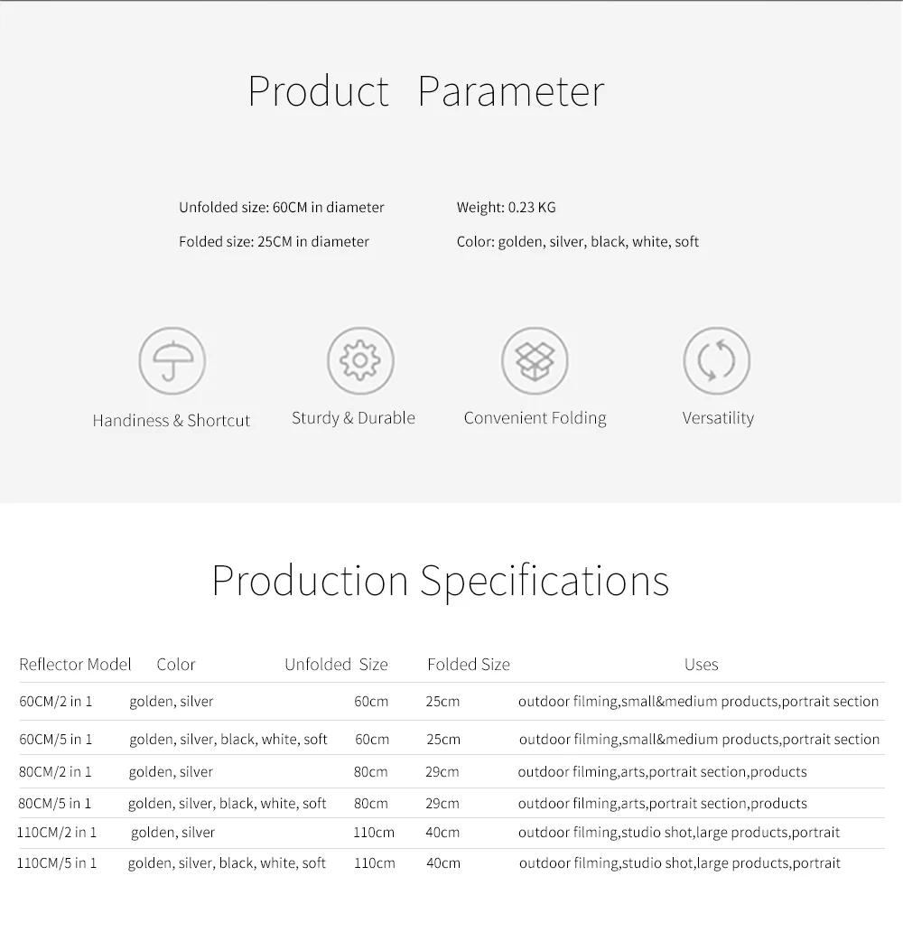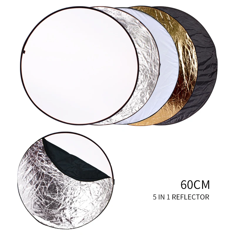 Светоотражатель 5 в 1, складной светоотражатель для фотостудии, полупрозрачный, серебристый, золотой, белый и черный, 60 см