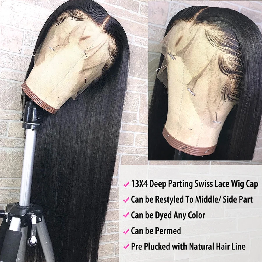 Парик Из прямых человеческих волос, 30 дюймов, 4 х4, 13 Х1