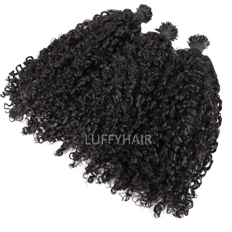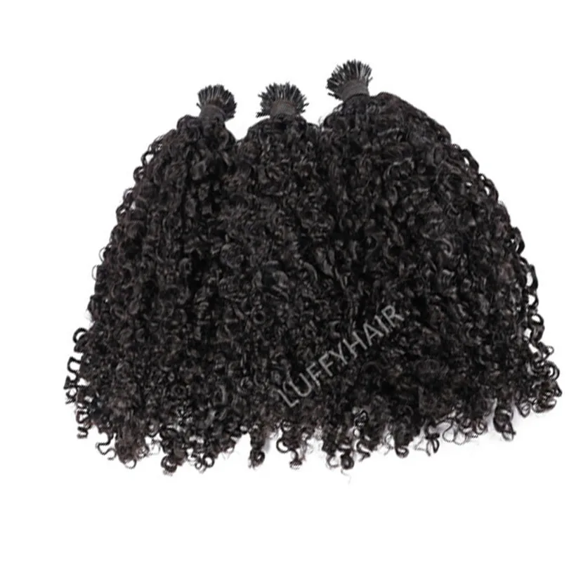 Sassy кудрявые I-образные волосы для наращивания, 100 прядей, Remy, бразильские человеческие волосы с микрокрасками, кератиновые волосы черного и коричневого цвета для женщин