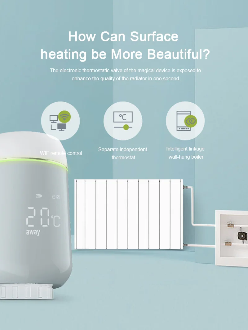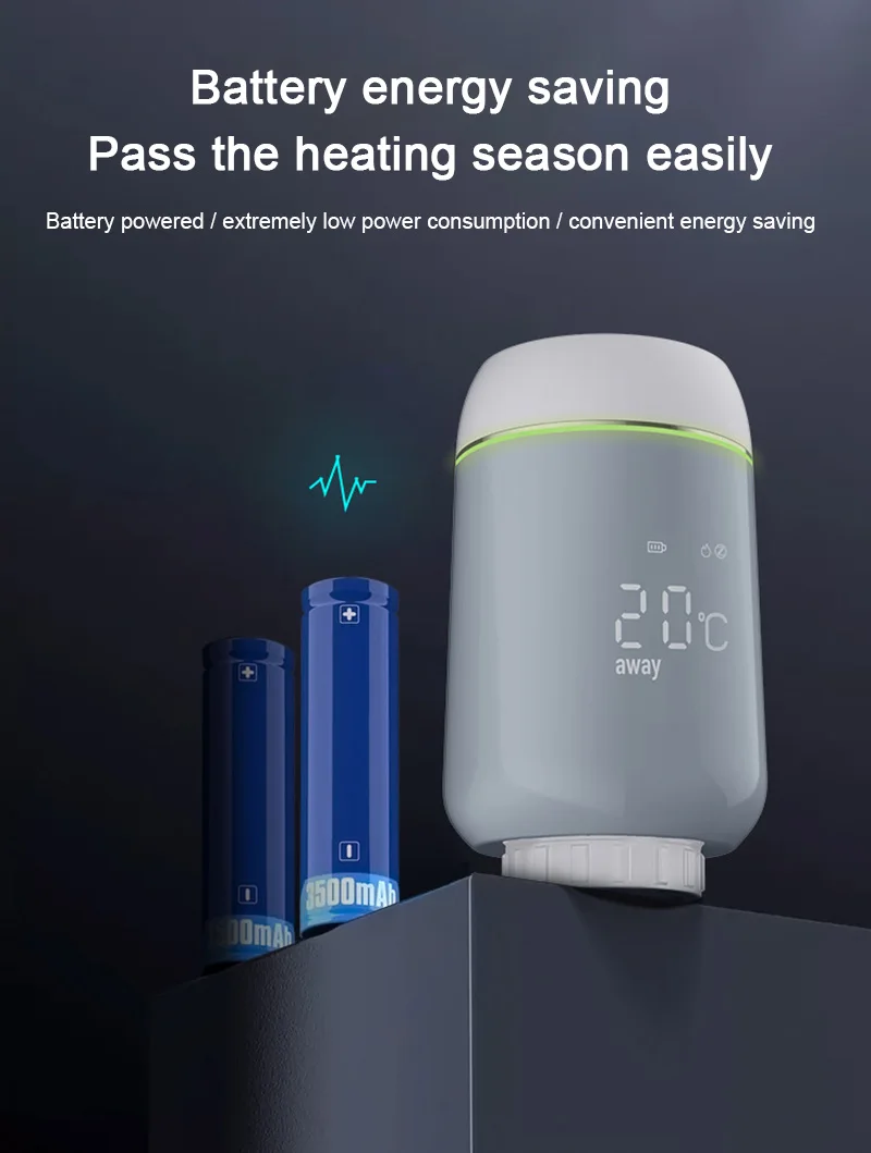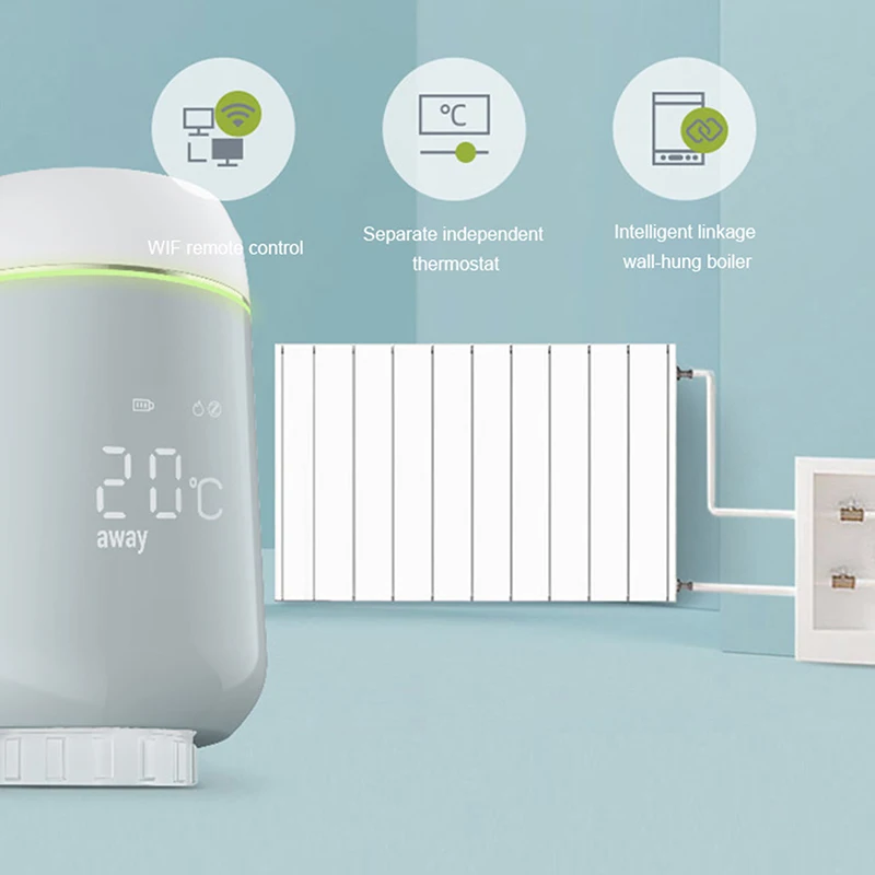 1. Термостат привода радиатора Smart Tuya ZigBee: Новый мини-дизайн с простым и четким ЖК-экраном на корпусе, термостат радиатора с ЖК-дисплеем и двумя секциями аккумуляторов AA, который является специальным клапаном, использующим вместе с нагревательным радиатором. Искусственно устанавливаемая температура в помещении, В основном используется в напольной системе отопления для контроля закрытия и открытия трубы.