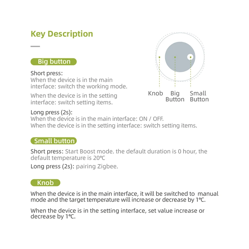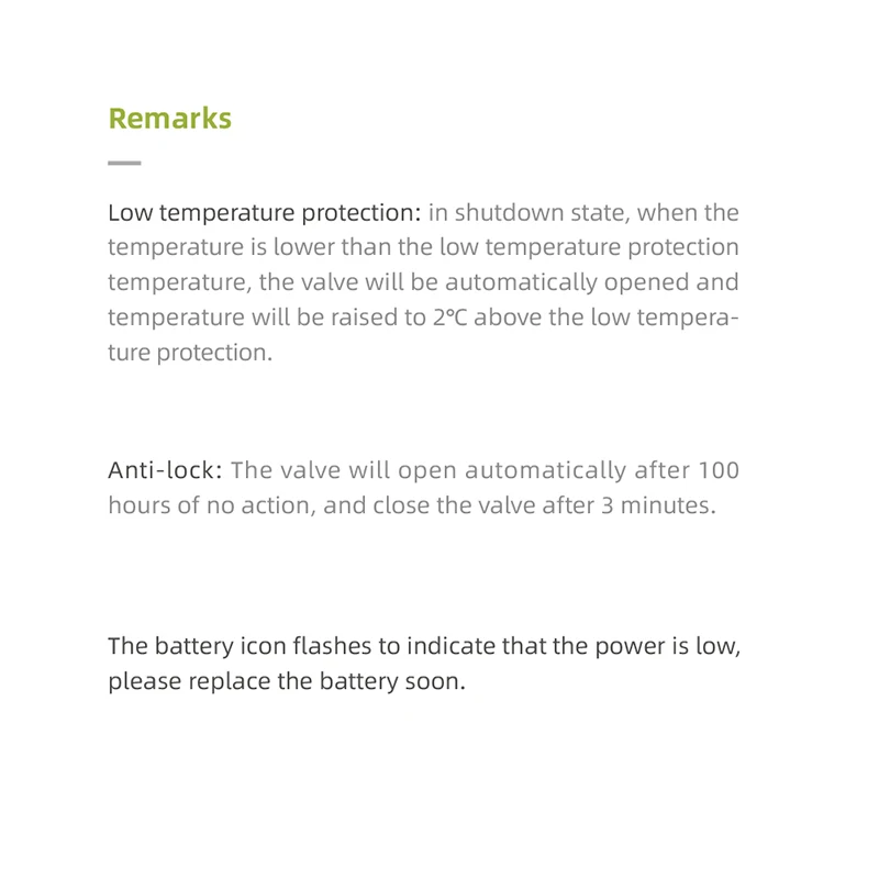 5. Обнаружение открытого окна: когда температура в помещении неожиданно падает в темп. Порог, клапан закроется в течение 15 минут. После этого, если температура в помещении. Все еще ниже, чем температура. Порог, он сохранит этот режим. Кроме того, его легко читать цифровой дисплей с температурой Цельсия.