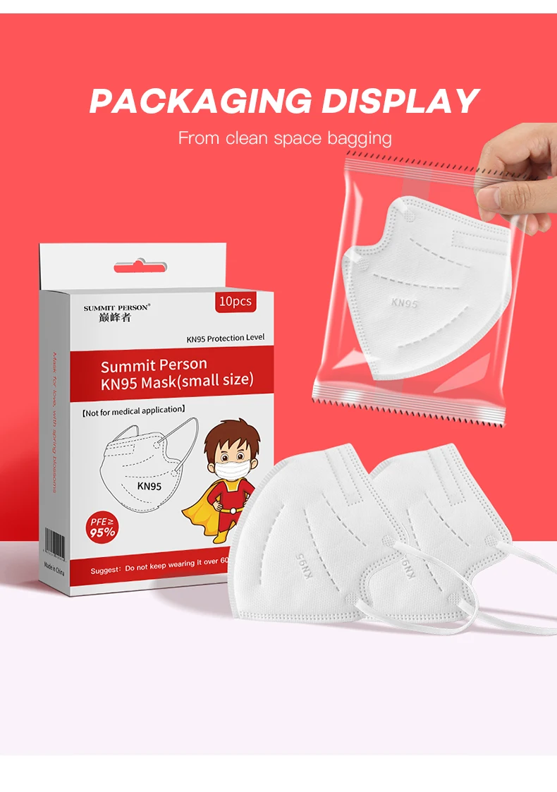 Маски KN95 детские, 5 слоев, 10-100 шт. в коробке, 10 индивидуальных упаковок, защитные, легкие, дышащие, очень мягкие