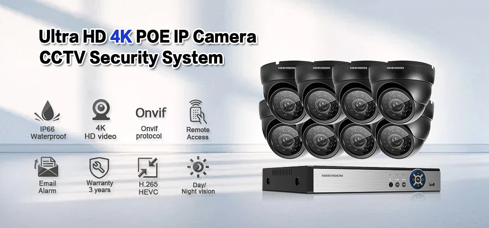 NINIVISION 4K SONY CCTV комплект видеонаблюдения 8CH POE NVR 3840*2160 8MP открытый ip-камеры с питанием по POE H.265 система безопасности