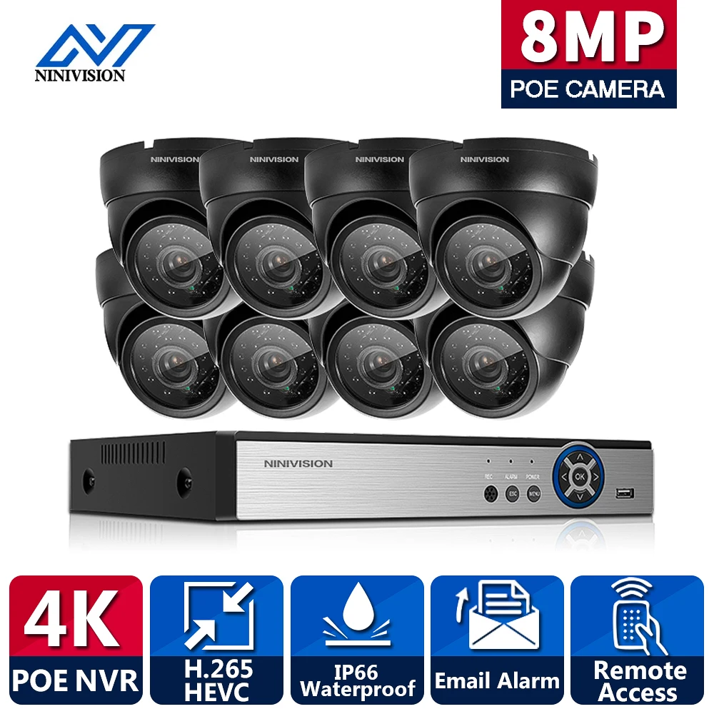 NINIVISION 4K SONY CCTV видеонаблюдение комплект 8CH POE NVR 3840*2160 8MP открытый ip-камеры с питанием по POE H.265 безопасности камера Системы набор
