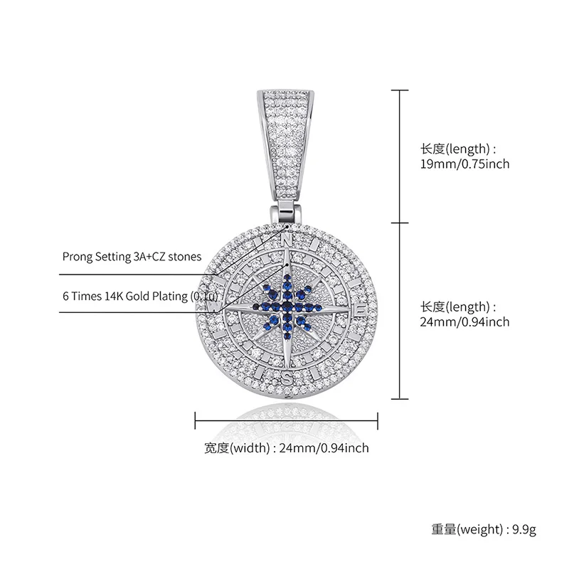 Кулон JINAO в стиле хип-хоп с компасом, ААА + кулон с фианитом и цепью для тенниса, модная Подарочная бижутерия в стиле хип-хоп для мужчин и женщин
