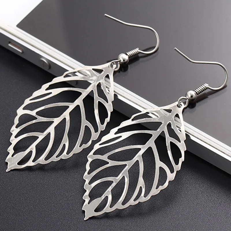 Женские серьги в форме листьев, посеребренные серьги, простые украшения для вечеринок, висячие серьги