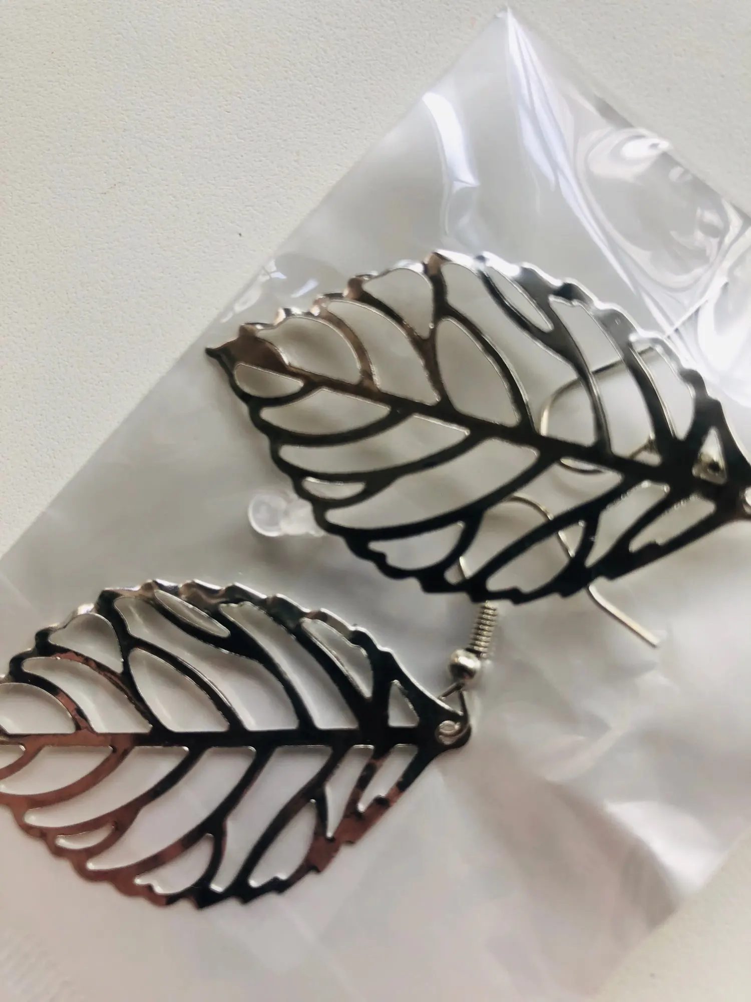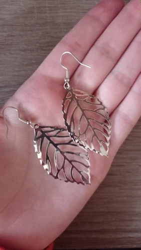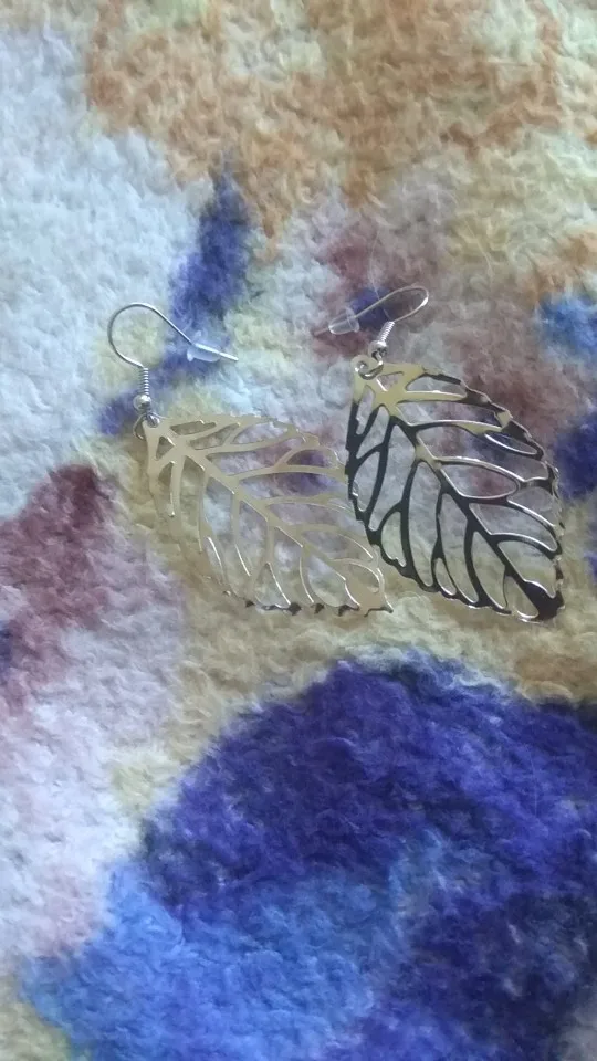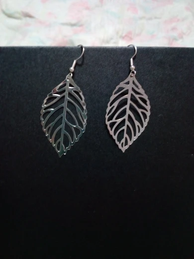 Серёжки как на картинке, блестят. Но они повернуты задней шершавой стороной листочка вперёд.