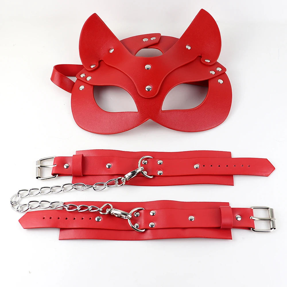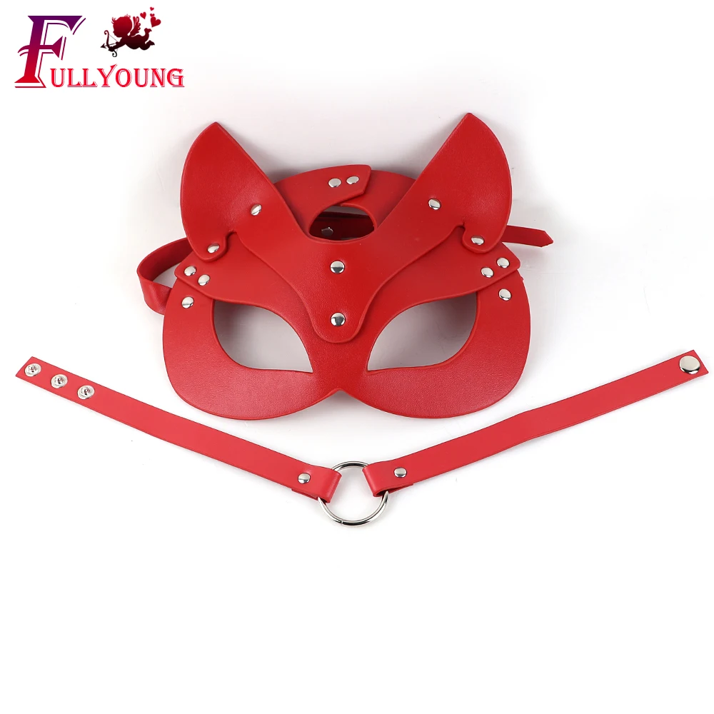 Комплект кожаных портупей Fullyoung, женская маска с полуглазами и кожаный чокер, эротические игрушки для взрослых, Готическая Красная кожаная регулируемая