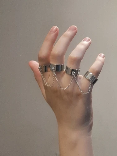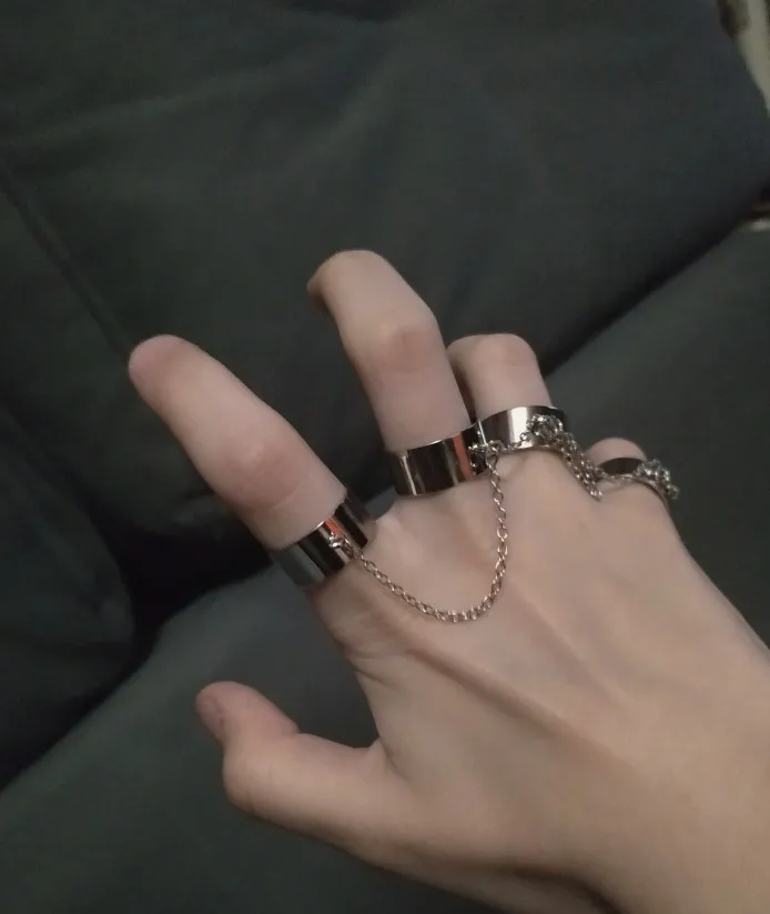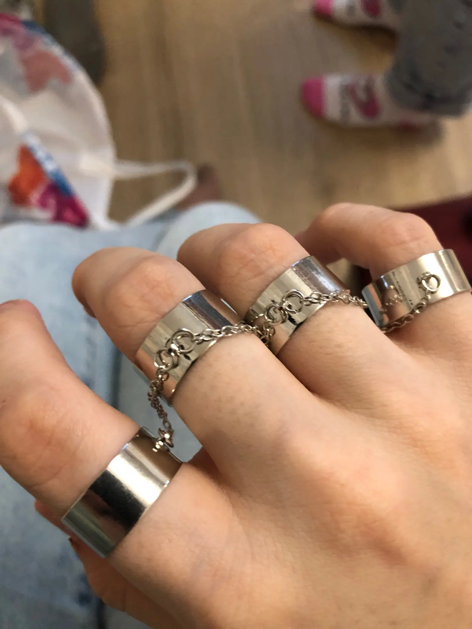 зачётные кольца, многие мои друзья переживали, что они будут тяжёлыми, но они очень лёгкие и удобные для носки. единственная проблема, что все кольца одного размера, поэтому с моего милип|здрического мизинца постоянно спадает кольцо. но с другой стороны, у них нет размера, так что этого можно было ожидать. мне так же нравятся звуки этих цепочек, клацно