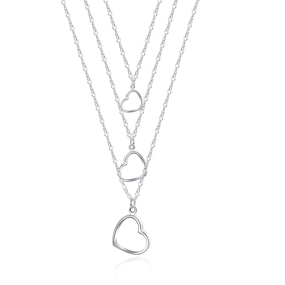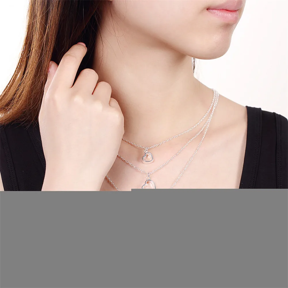 Новый стиль 925 серебро ожерелье из нержавеющей стали три, стильный элегантный кулон "Сердечко" для обручальные кольца вечерние свадебные женские ювелирные изделия