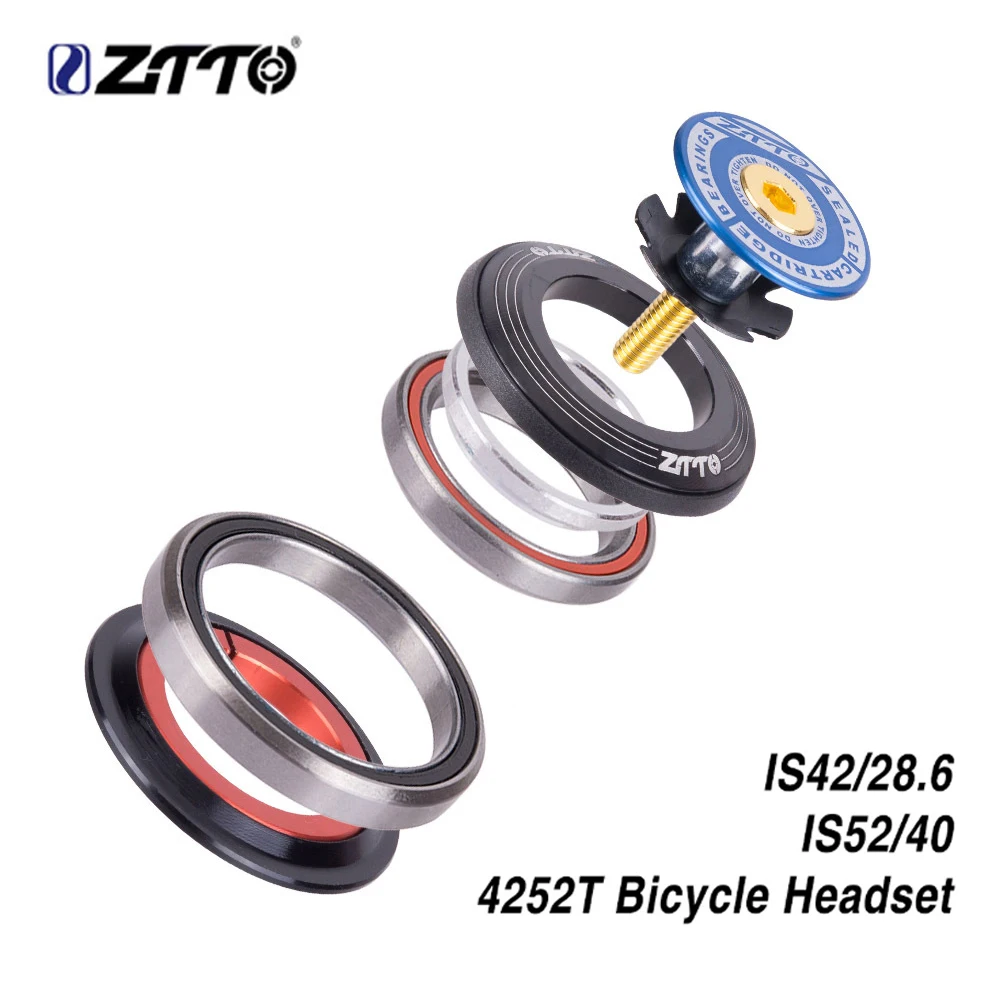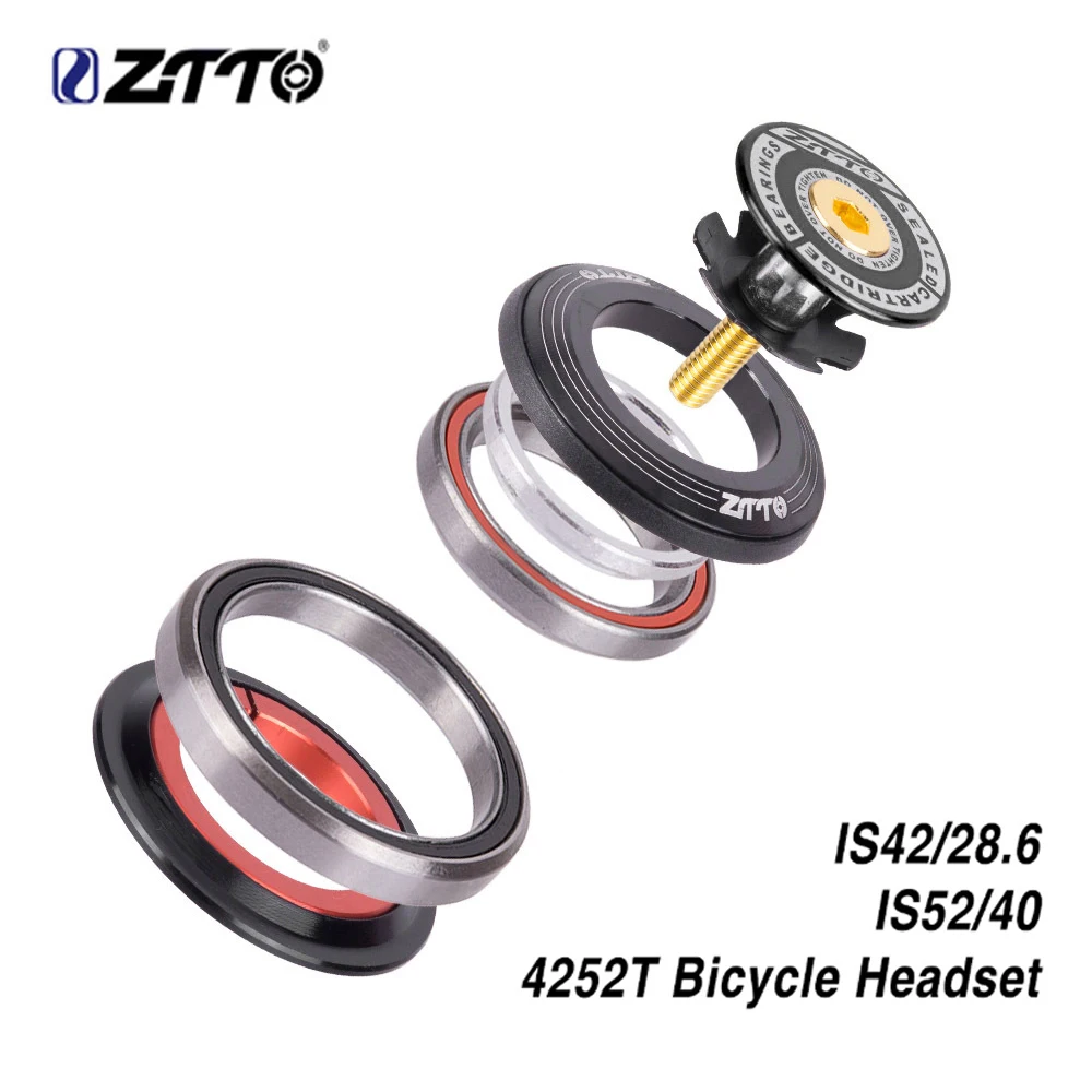 Велосипедная гарнитура ZTTO, 42 мм, 52 мм, CNC 1 14 "-1 14", подшипник для горного велосипеда, прямая коническая трубчатая вилка IS42 IS52, интегрированная система рулевой колонки