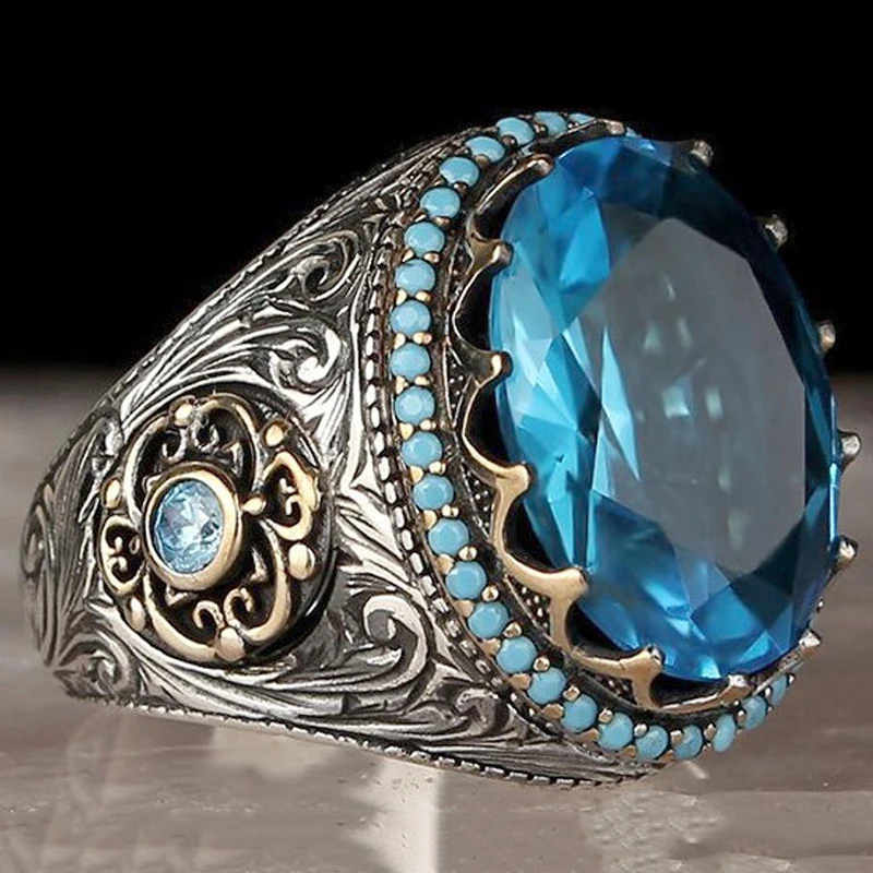 Кольцо на палец с серебряным покрытием, инкрустация крупным темно-синим кубическим цирконием, металлическое кольцо для женщин и мужчин, преувеличенный Подарок на годовщину