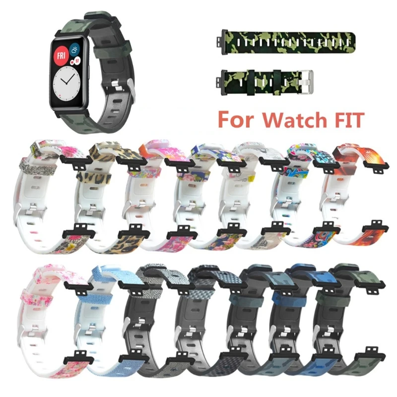 Ремешок резиновый для наручных часов Huawei Watch Fit, сменный спортивный браслет с принтом, аксессуары для смарт-часов