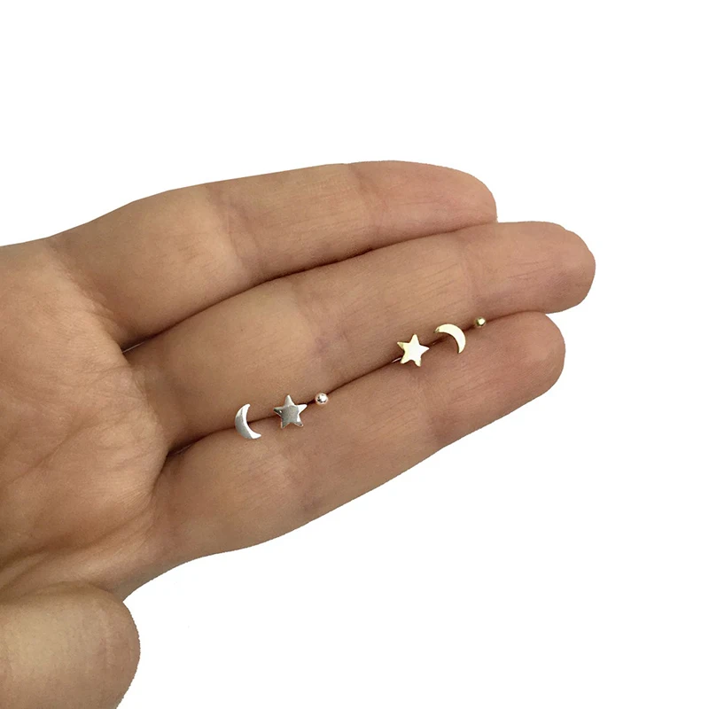 Автоклав серьги для женщин 925 стерлингового серебра серьги 1 комплект из 3 предметов: мини-платье с изображением Луны и звезд, шаровой мини серьги-гвоздики ювелирное изделие