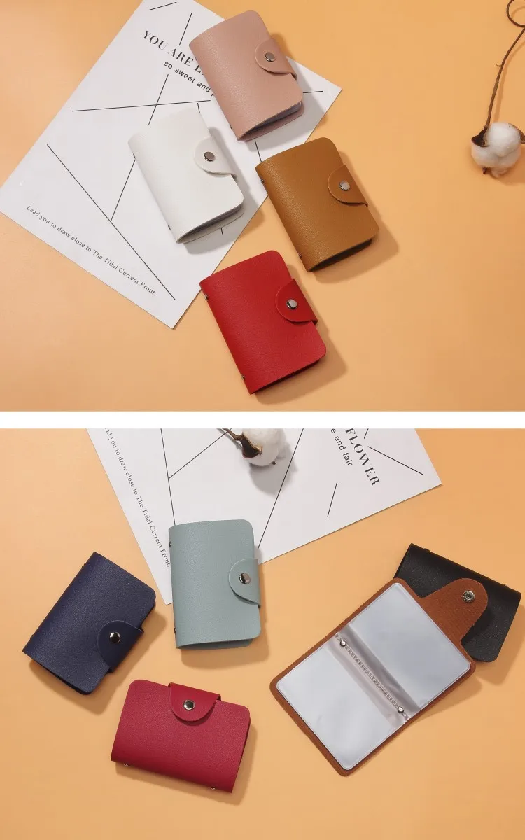 Модный женский мужской держатель для кредитных карт, 24 бита, искусственная кожа, пряжка, визитницы, держатель для карт, держатель для паспорта, держатель для карт, кошелек, сумка/переносные случаи, 24-битные держатели для визитных карт из искусственной кожи с пряжкой, визитные карточки, держатель для удостоверений личности, держатель для паспорта, кошелек, сумка