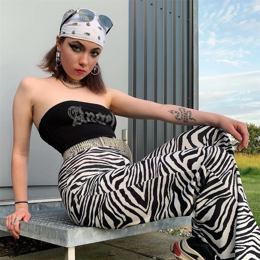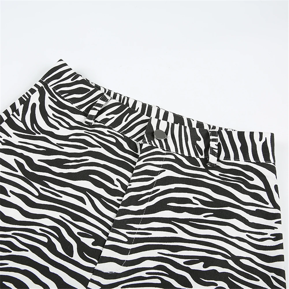 Брюки-Капри женские с высокой талией, модные повседневные штаны с принтом зебры, брюки вечерние, уличная одежда в стиле Харадзюку