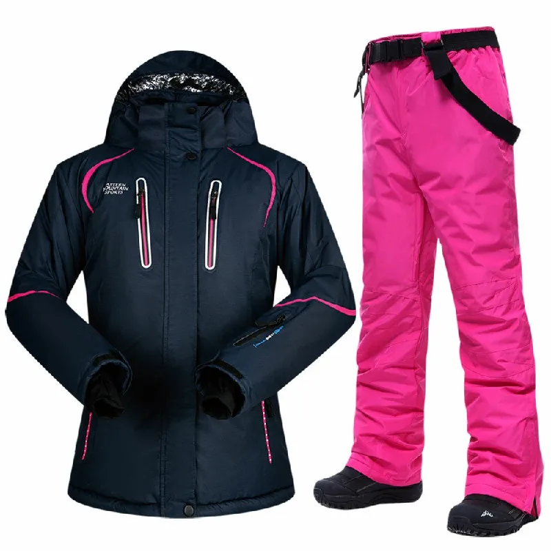 Зимний лыжный костюм для женщин, брендовая Лыжная куртка и брюки, очень теплая Высококачественная ветрозащитная Водонепроницаемая теплая одежда для катания на лыжах и сноуборде