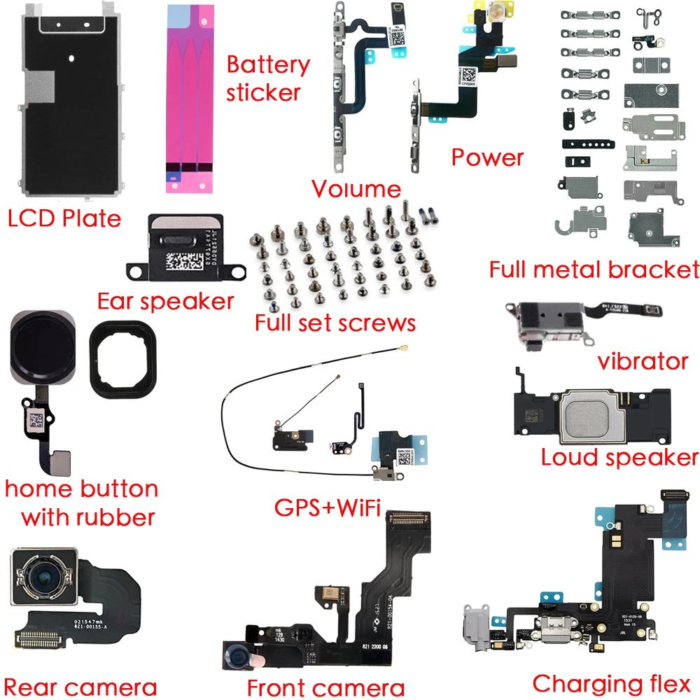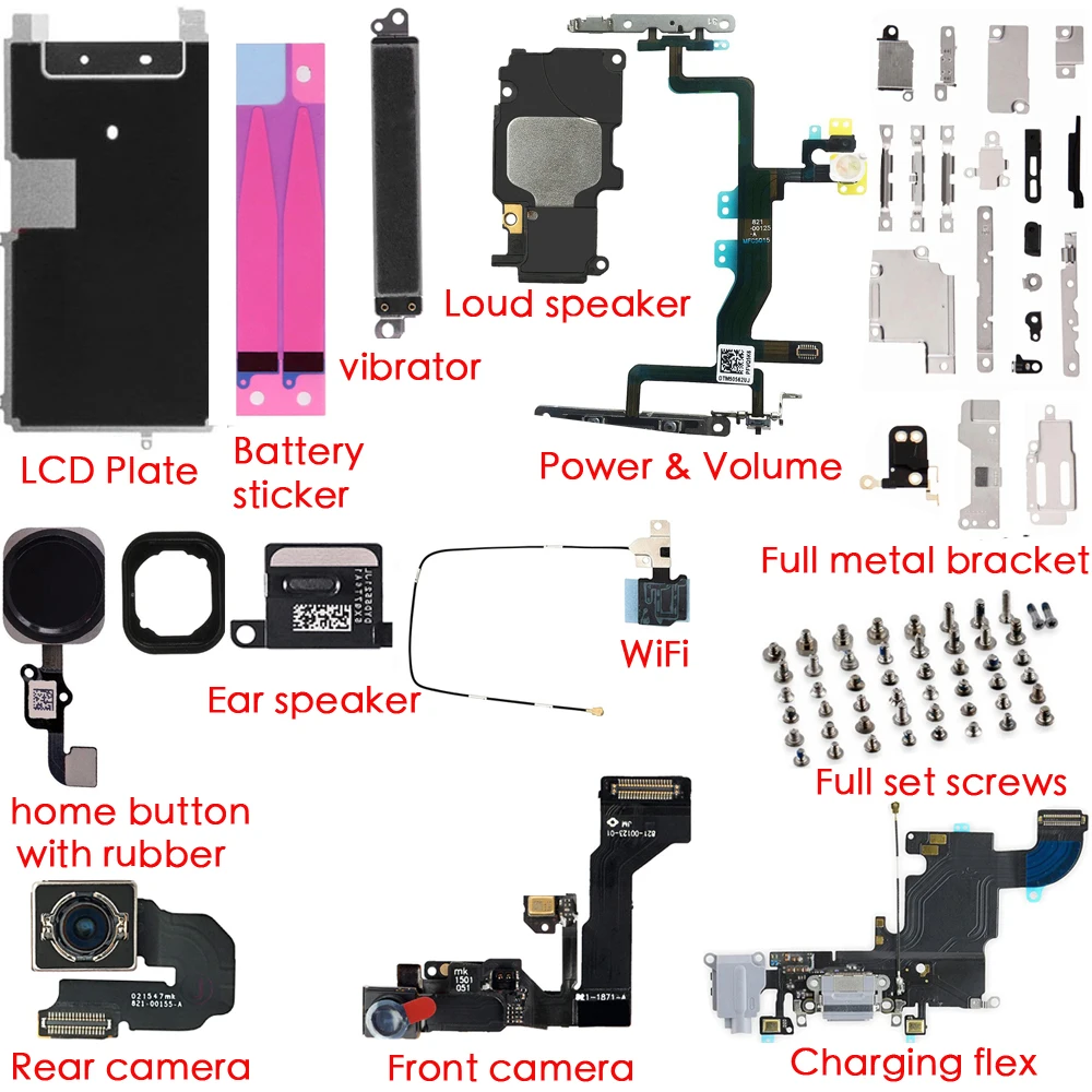 Полноценные внутренние детали для iPhone 6s 6splus Главная Кнопка задняя фронтальная камера питание громкость Зарядка гибкий кабель ушной громкий динамик