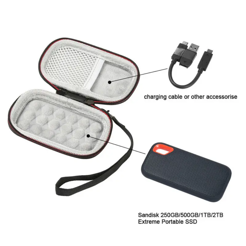 Легко носить с собой: этот жесткий чехол для двойной флеш-накопитель SanDisk 250GB / 500GB / 1 ТБ/2 ТБ Экстрим Портативный SSD SDSSDE60 легкий и компактный может поместиться в вашем рюкзаке, кейс для ноутбука или чемодан.