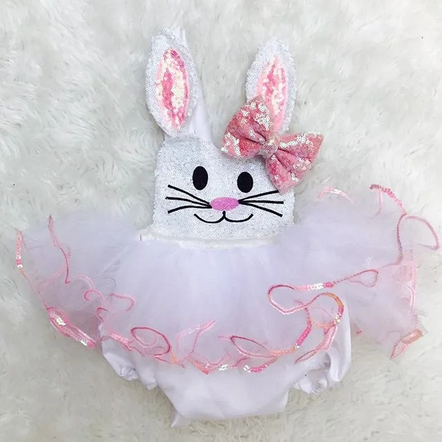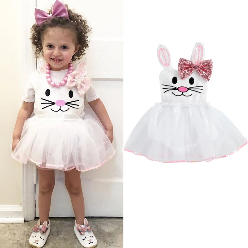 Пасхальный милый комбинезон для новорожденных девочек; Платье с рисунком кролика с блестками, бантом и принтом в кружева пачка Комбинезоны От 0 до 3 лет Вечерние наряды