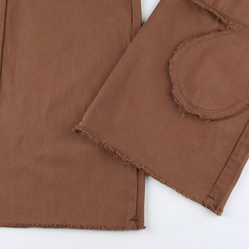 HEYounGIRL коричневый повседневные Прямые джинсы для женщин, с модным карманом длинные джинсовые брюки, Капри зауженные винтажные брюки женская уличная куртка