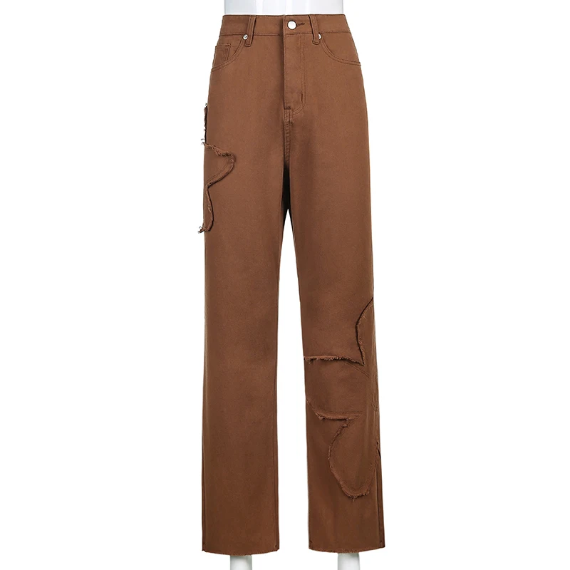 Модные мешковатые джинсы Y2K в эстетике, женские коричневые винтажн...