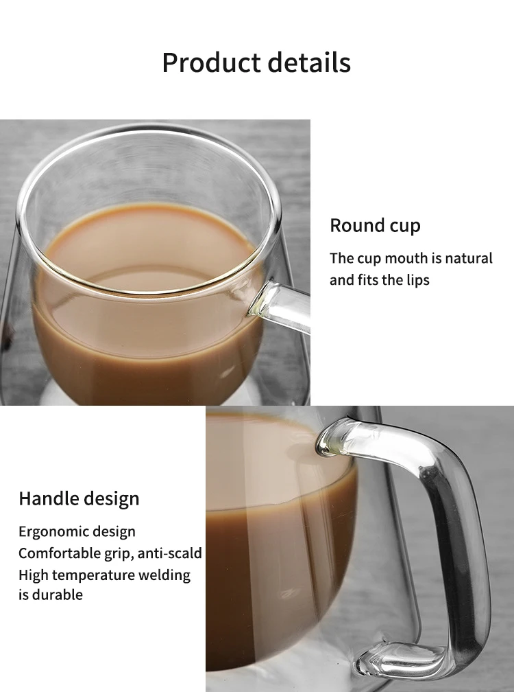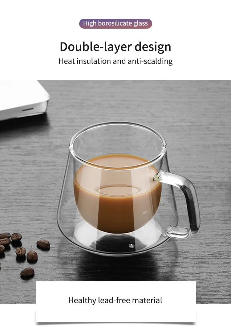 Двухслойная стеклянная чашка термостойкая чайная кофейная кружка с ручкой портативная прозрачная пивная кружка стеклянная чашка для виски питейная посуда кружки