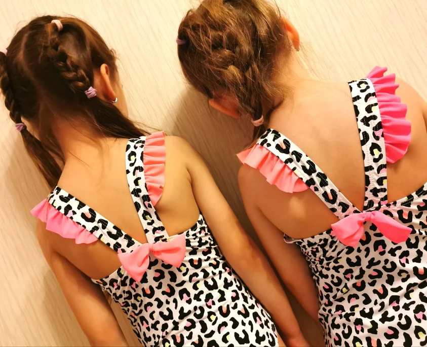 Слитный купальник для девочек, с леопардовым принтом, Цветной купальник