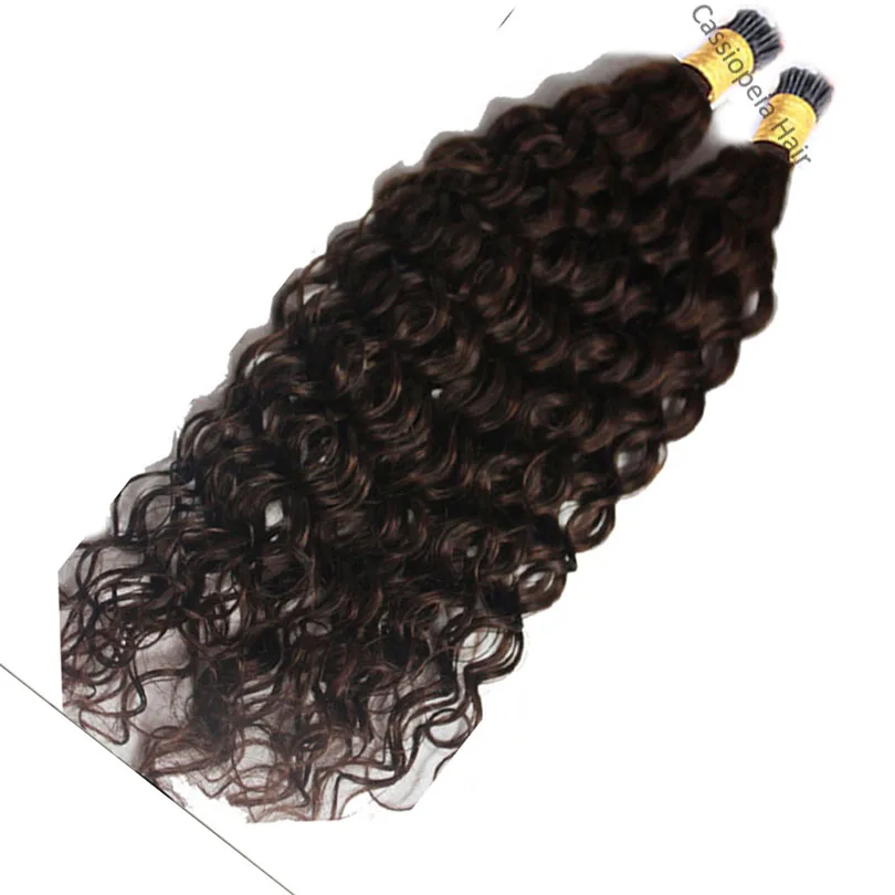 Коричневый глубокий кудрявый I Tip человеческие волосы для наращивания для женщин 1 г/локон 100 прядей бразильские Свободные глубокие вьющиеся человеческие волосы микробинкс волосы