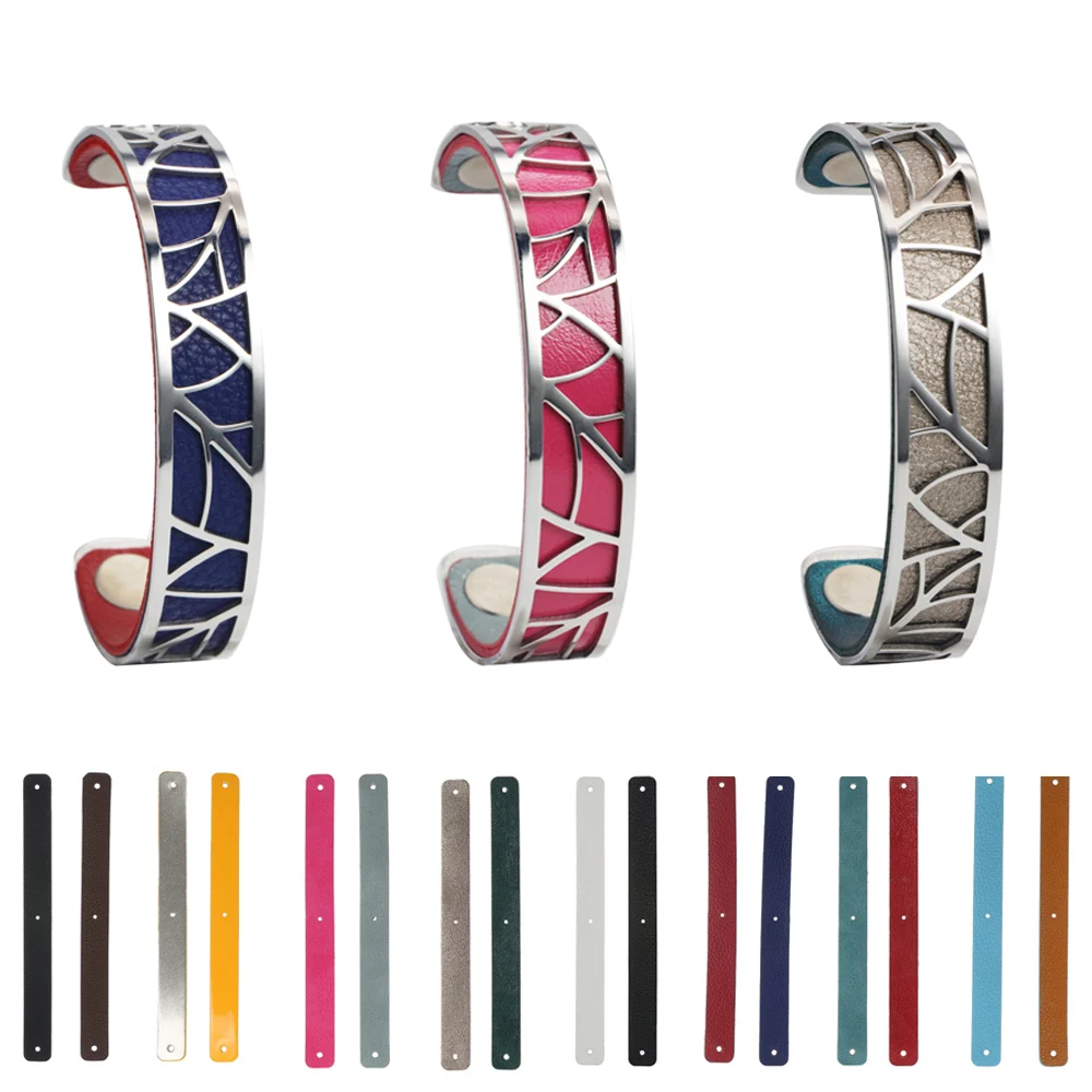 Браслеты-манжеты женские из нержавеющей стали со сменным кожаным ре...