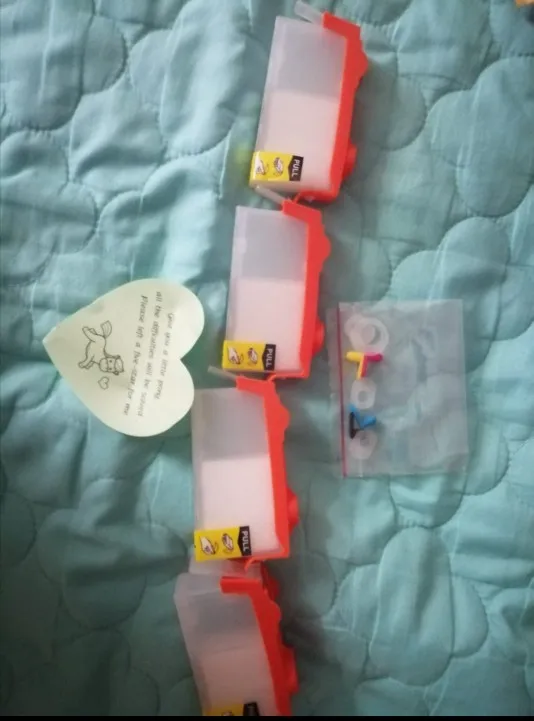 Было написано что картриджи с чернилами но пришли пустые,заказывала краски но их нет и когда придут неизвестно не отслеживаются,так что работа откладывается на неопределенное время.Думала что все придет в одной посылке.