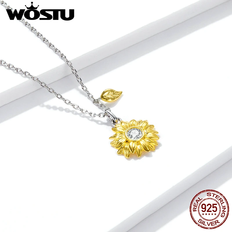 WOSTU 925 серебряное ожерелье с подсолнухами; Звено цепи ожерелье д...
