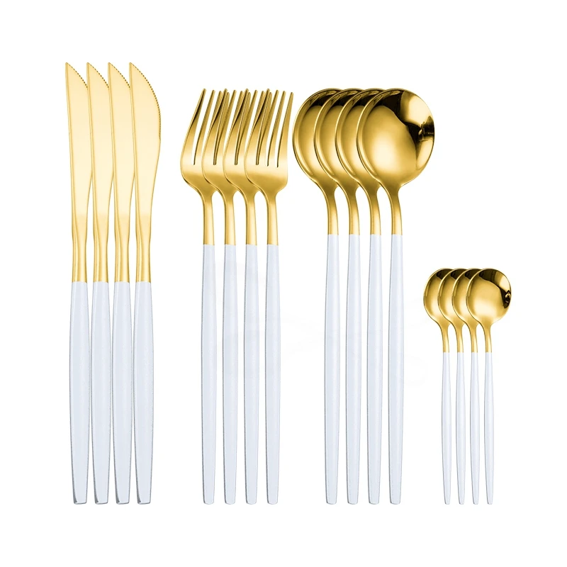 Набор кухонной посуды, столовые приборы из нержавеющей стали, набор столовых приборов белого и золотого цвета, 16 ножей набор ложка и вилка, Прямая поставка