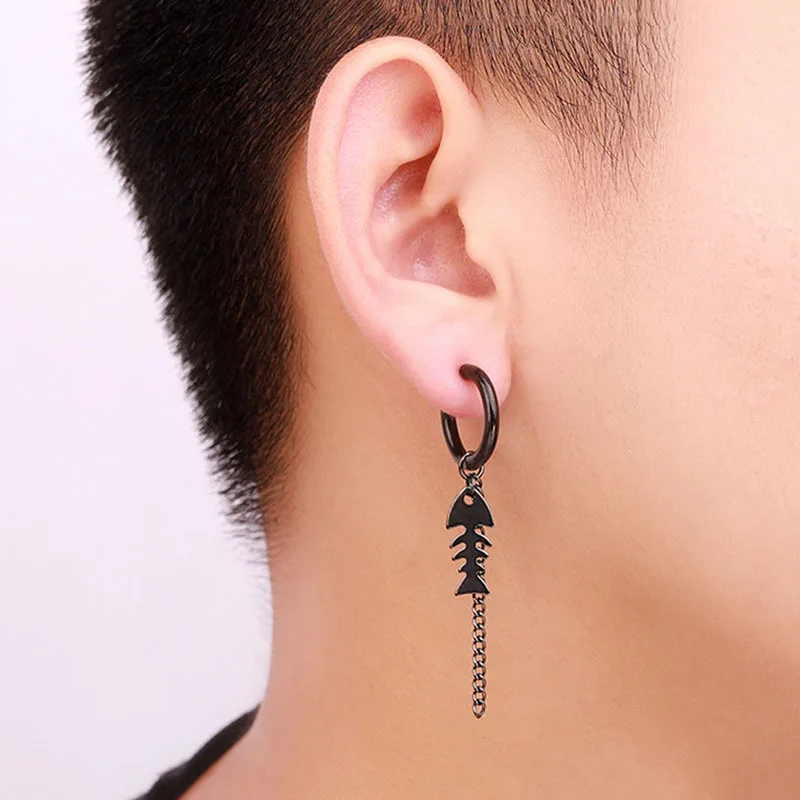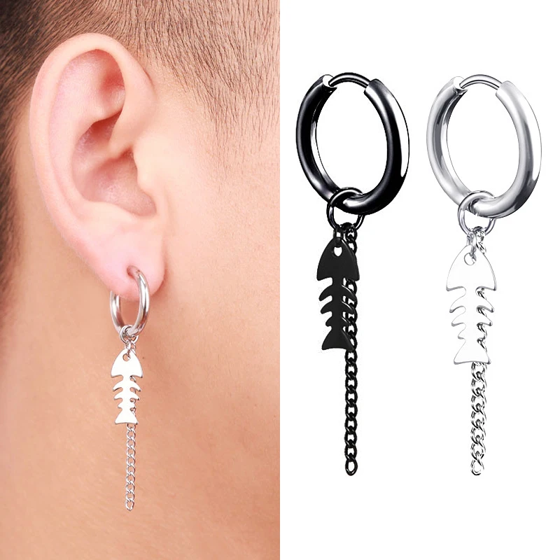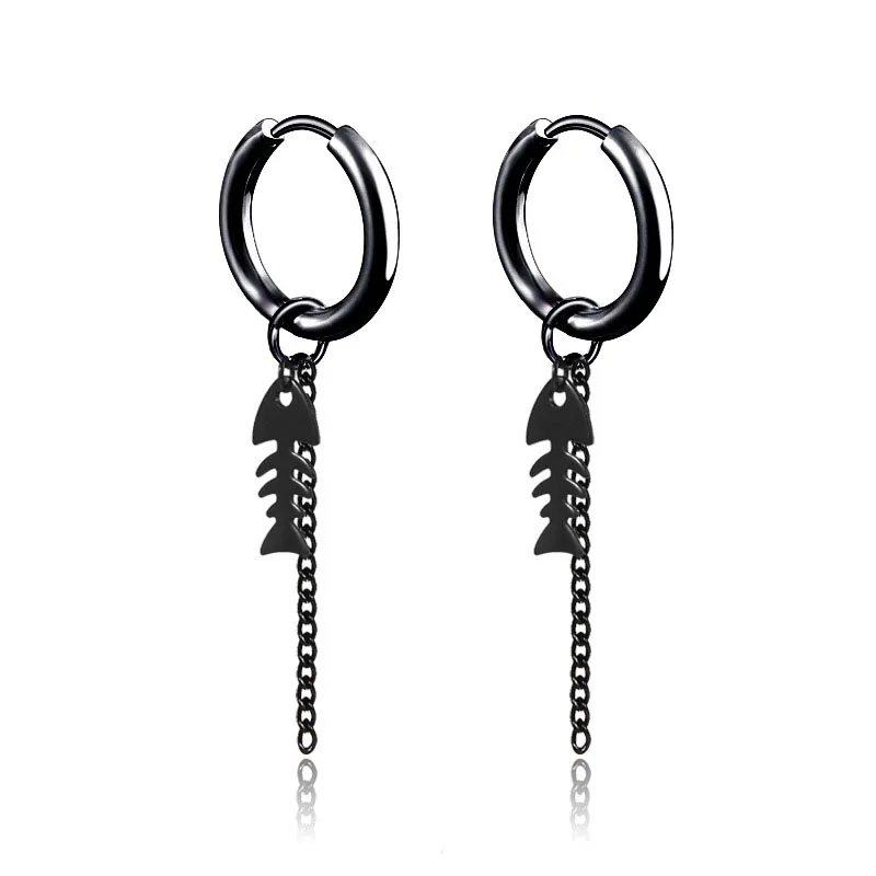 Так горячо новый унисекс из нержавеющей стали, легированной титаном, рыбья кость серьги в виде колец, черный Цвет в стиле "хип-хоп", оптовая продажа, Панк шик Сумка тассель цепь человек вечерние