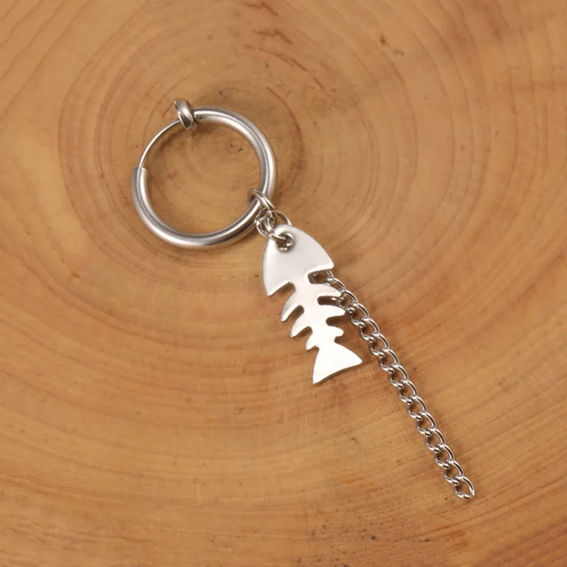 Мужские серьги-кольца с Луной, звездами, рыбьими костями, в стиле п...