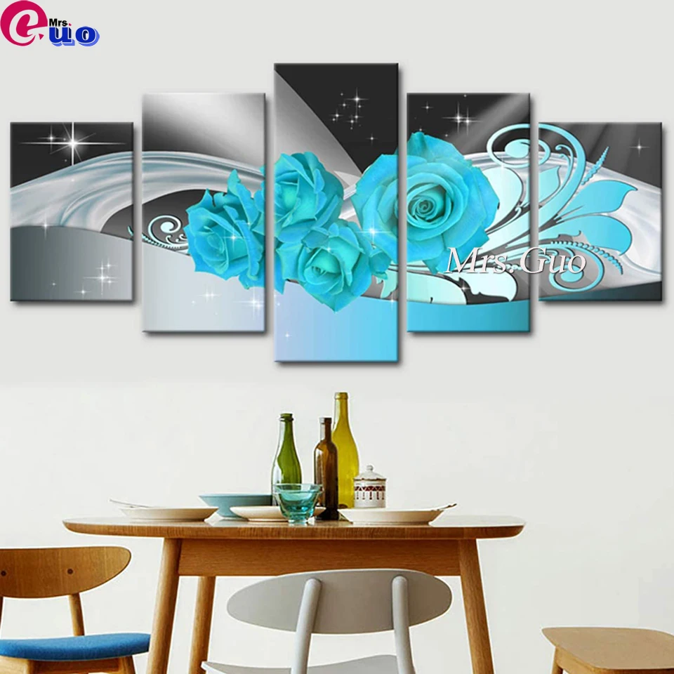DIY 5D алмазная картина абстрактная мульти-картина полностью квадратная мозаика Вышивка крестом Алмазная вышивка 5 шт. зеленая Роза цветок