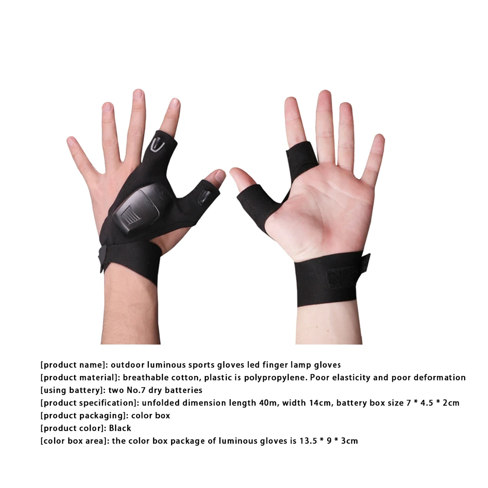 1 пара наружных перчаток без пальцев для рыбалки, светодиодный фонарик для кемпинга, походов, велоспорта, ночного освещения