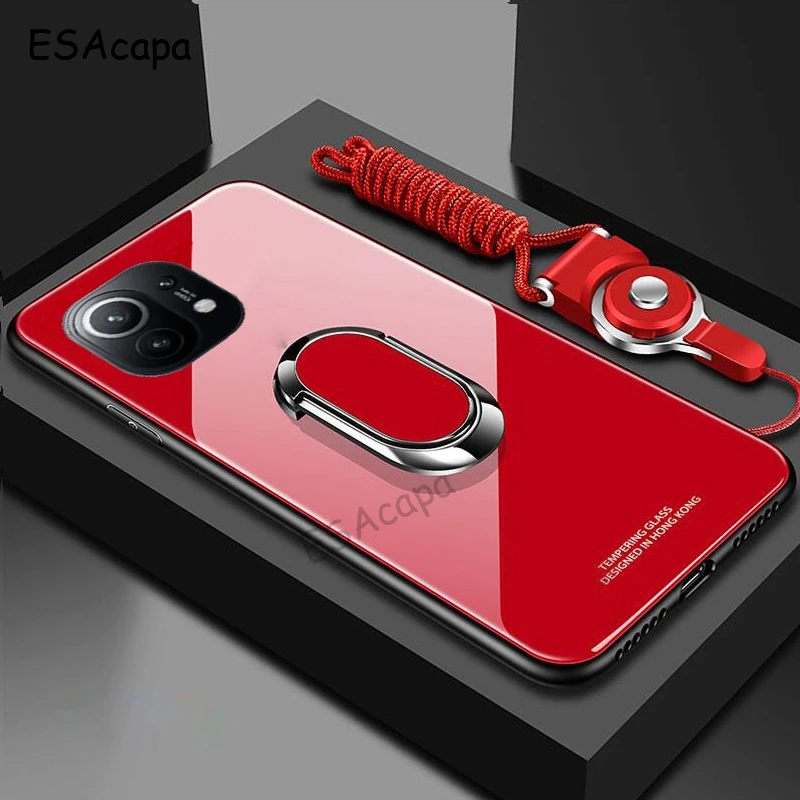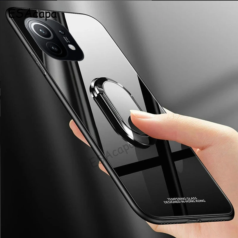 Чехол для Xiaomi Mi 11 Pro из закаленного стекла, чехлы для телефонов Xiaomi Mi 11 Pro, жесткая задняя крышка с магнитным кольцом-держателем