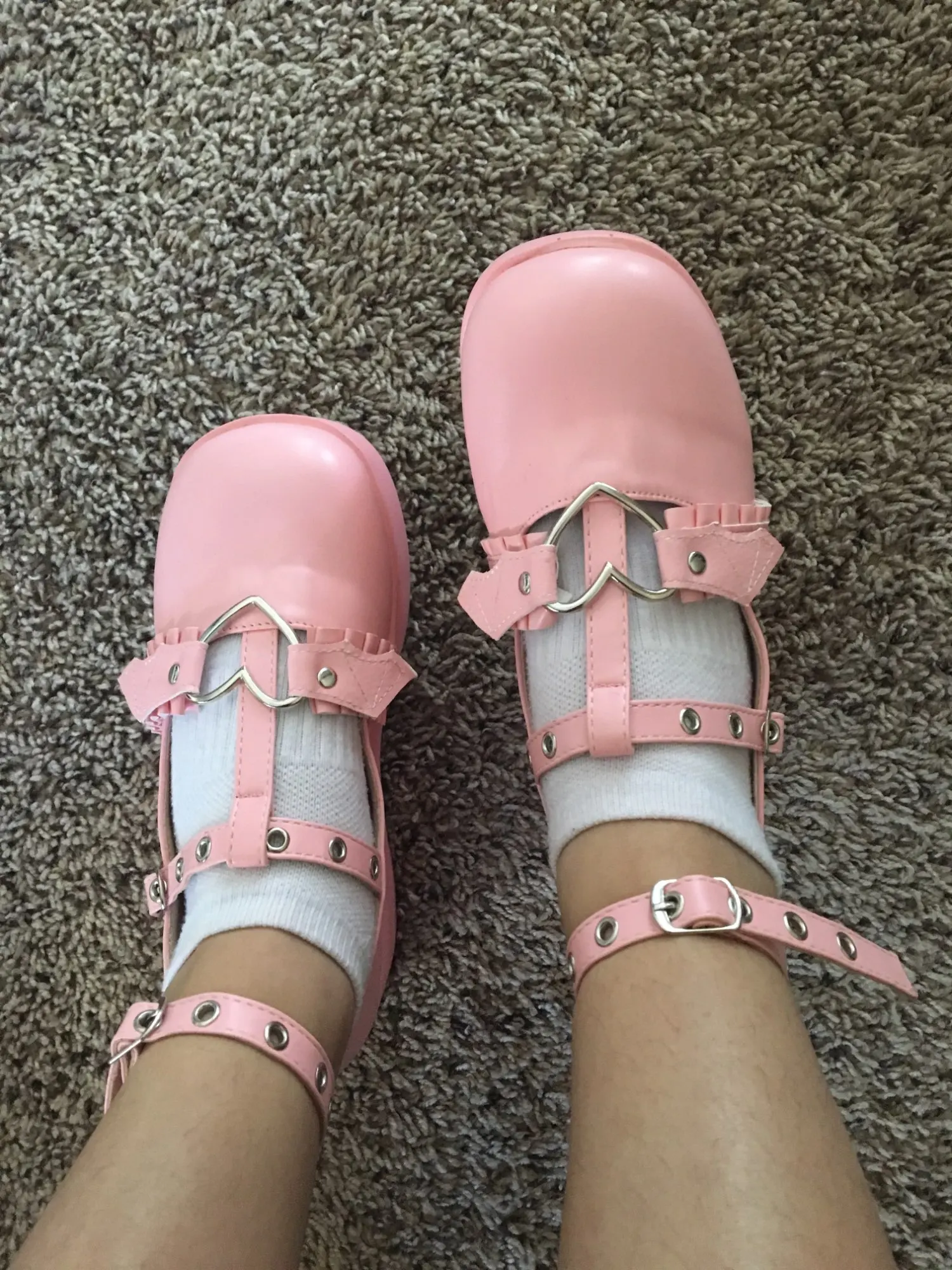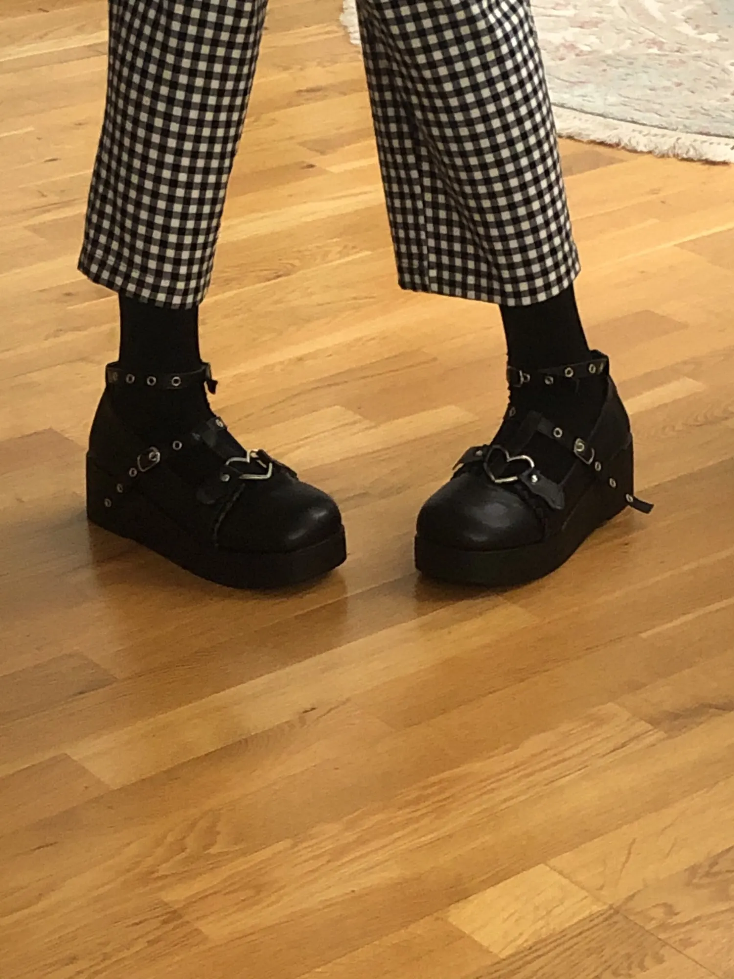 Обувь скоро прибыла. Я проверил их, когда получил их. Никаких дефектов и клея. Длина моей стопы около 24 см или 23,7 см. Я выбрал размер 7,5, который очень подходит. Он хорошо выглядит с белыми носками, и он также очень подходит для милой одежды или готической одежды, немного милый и немного крутой