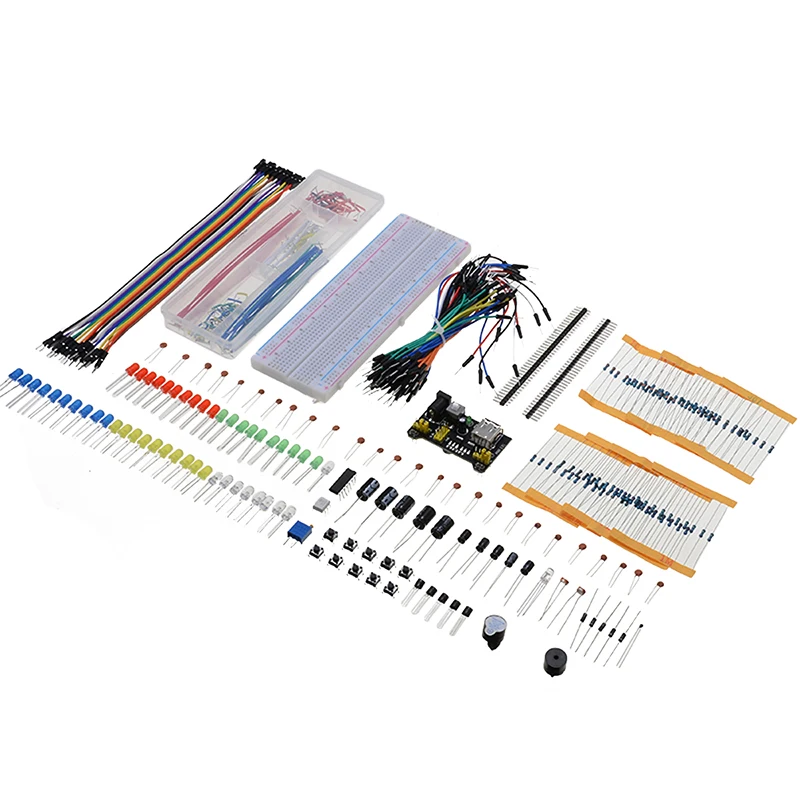 Ассортимент электронных компонентов базовый стартовый комплект светодиодный светодиодным потенциометром 830 контактных точек макетная плата резистор конденсатор