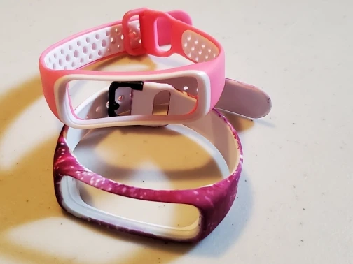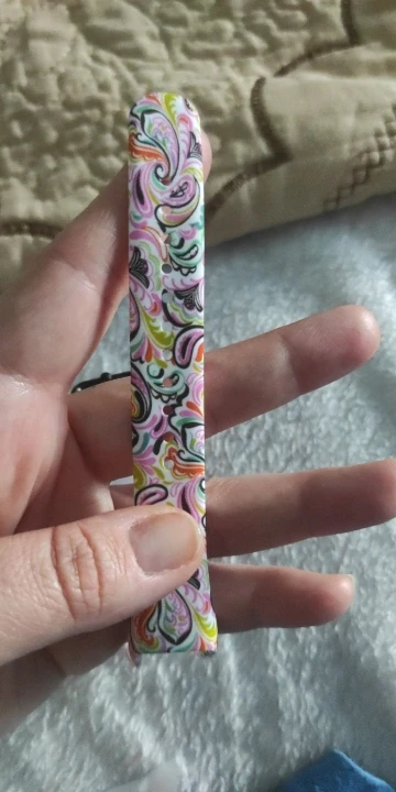 Красивый ремешок. Немного тоньше оригинала, но это не критично совсем. Мягкий, яркий летний вариант. К фитнесс трекеру Galaxy Fit 2 подошёл идеально. Рекомендую к покупке. Трэк не отслеживался, отправили не сразу, шёл не быстро, но и не долго. В общем я довольна - спасибо продавцу.