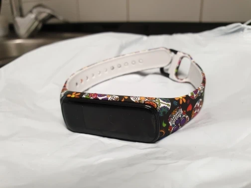 Браслет идеально подходит для моего galaxy fit 2. Жаль, что интерьер браслета не черный, потому что мы его видим, и он менее эстетичен. В противном случае рисунок соответствует фотографии, я надеюсь, что он не исчезнет слишком быстро. По цене все еще не на что жаловаться.